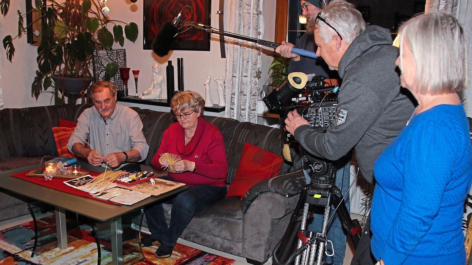 Beim Filmdreh von links: Heinrich und Christa Stautner, Tonmann Stephan Schmidt, Kameramann Volker Gabriel und Autorin Julia Seidl.
