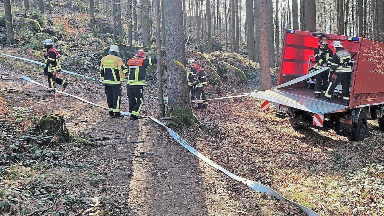 Eine lange Schlauchleitung mit einer Länge von fast einem Kilometer musste mitten durch den Wald verlegt werden.