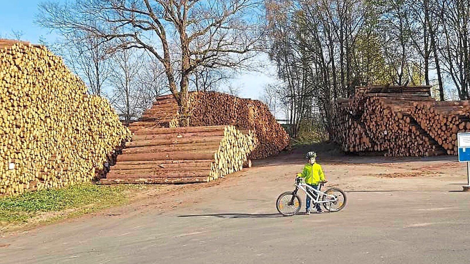Diesen Platz hat die Gemeinde Schönthal den Waldbesitzervereinigungen als Zwischen-Lagerplatz für Langholz zur Verfügung gestellt. Er wird sehr gut angenommen, bis der "Neubau" auf der gegenüberliegenden Seite der Straße fertiggestellt ist.