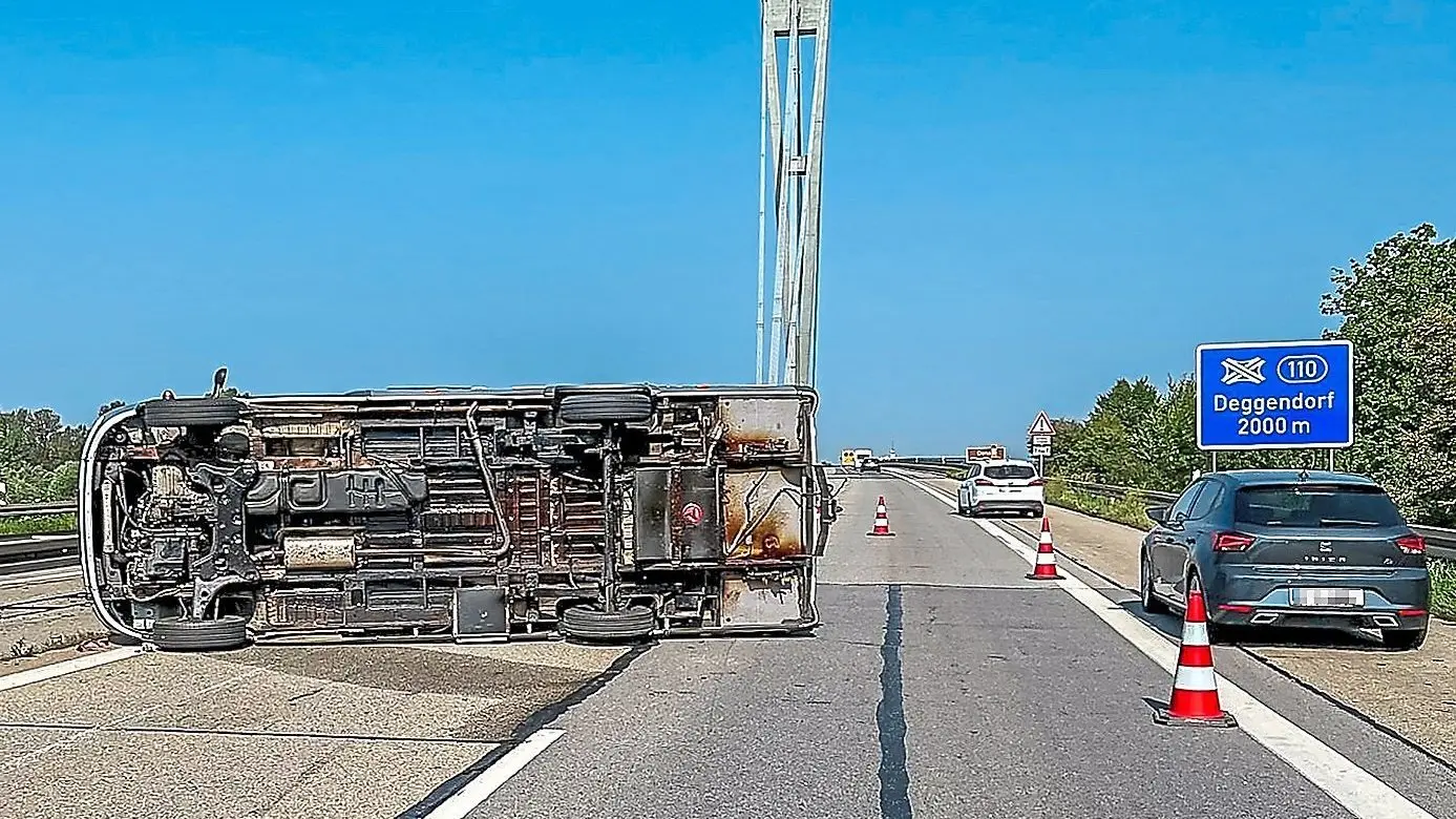 Ein österreichisches Ehepaar war Freitagmorgen gegen 9.45 Uhr mit seinem Wohnmobil von Passau kommend unterwegs, als es etwa 200 Meter vor der Donaubrücke auf Höhe Deggenau zu einem folgenschweren Fahrfehler kam. Der Fahrer verlor die Kontrolle über das Fahrzeug, das daraufhin ins Schleudern geriet. In Folge kippte der Ford Transit mit integriertem Aufbau auf die Seite und blieb quer zur Fahrbahn liegen, wodurch beide Fahrspuren blockiert wurden.