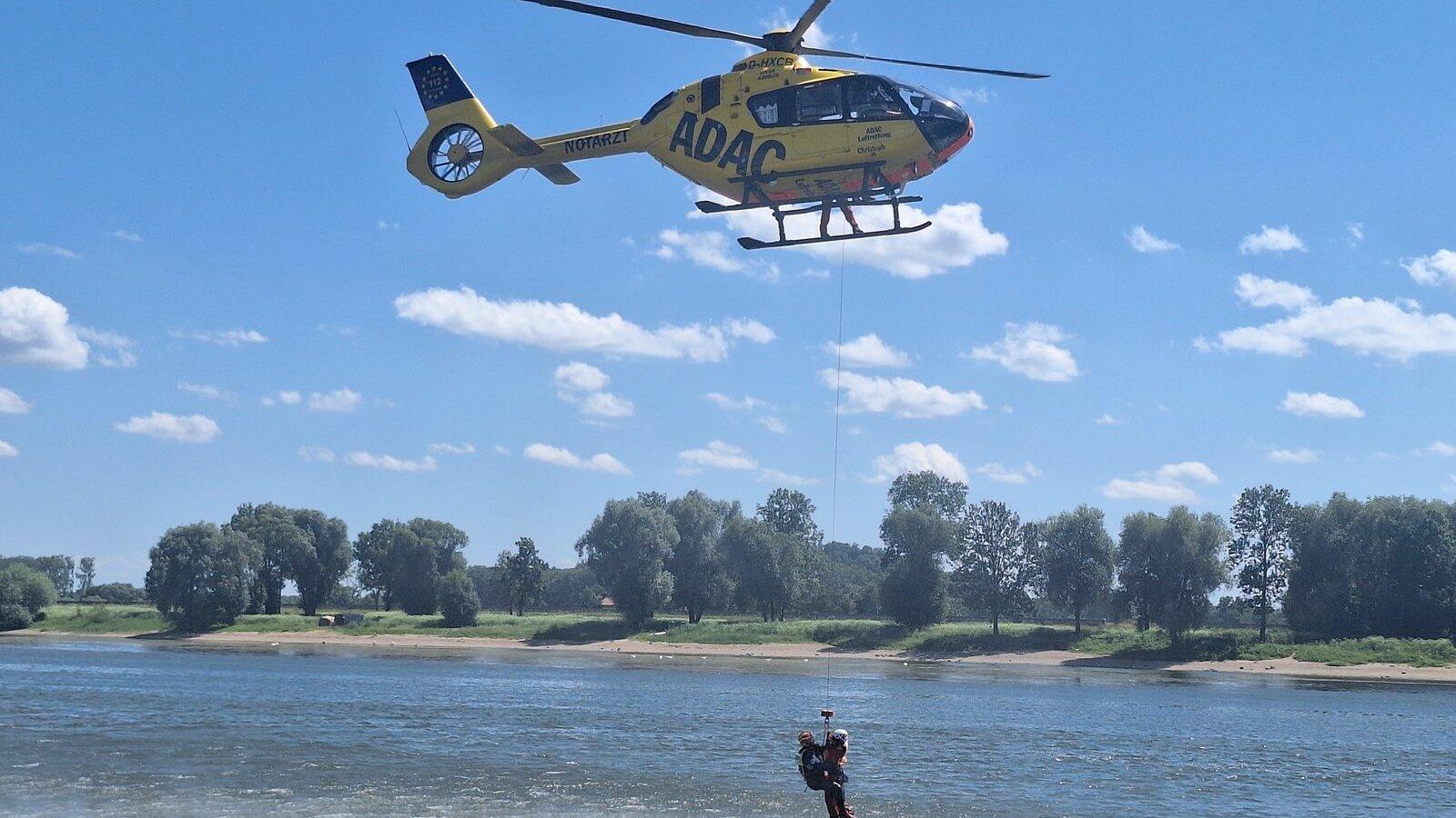 ADAC Luftrettung übt bei Metten, Ertrinkende aus der Donau zu retten