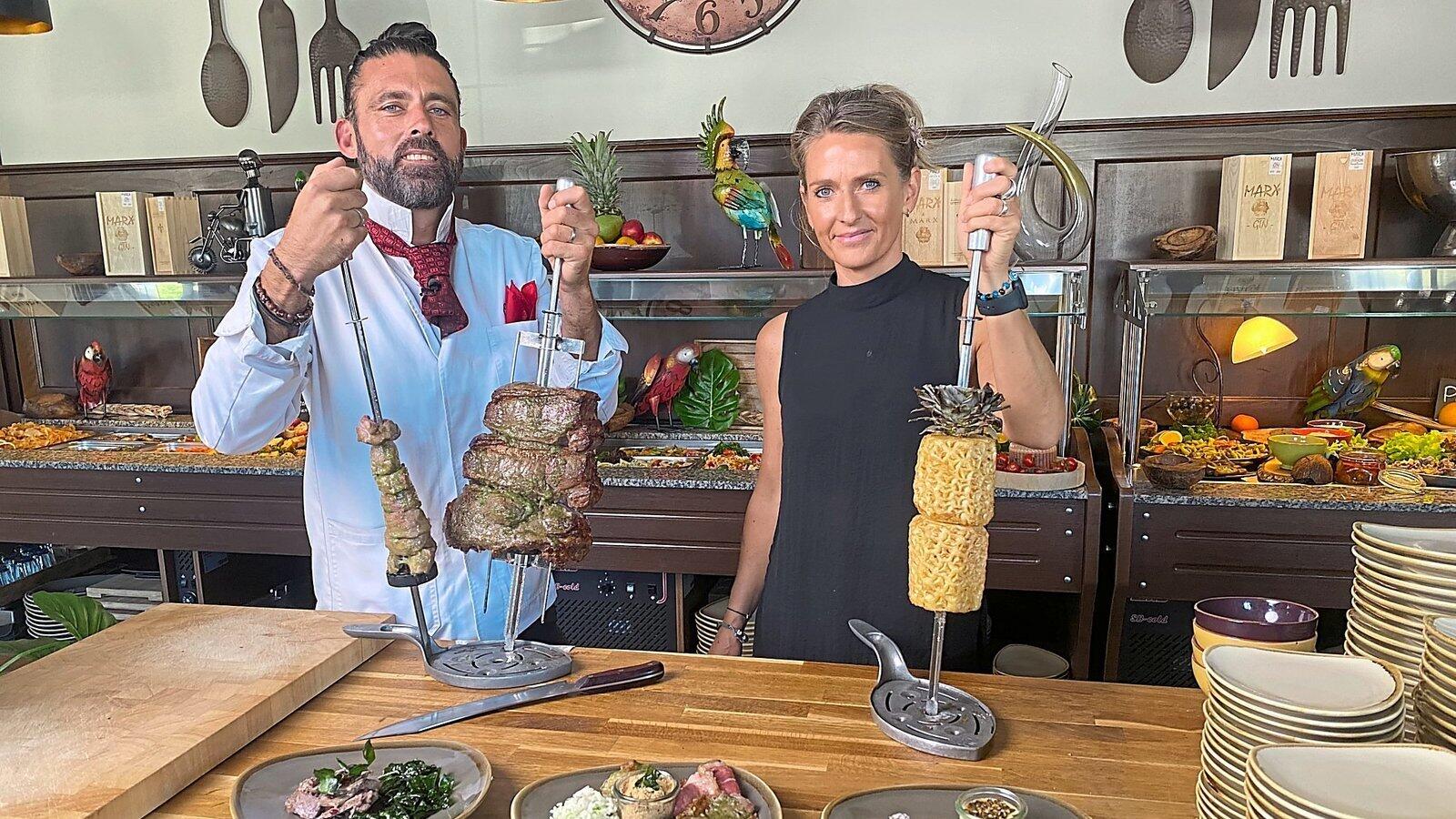 Patrizia Eid betreibt im Mettner Hof mit ihrem brasilianischen Mann Elvis ein Churrasco-Restaurant.