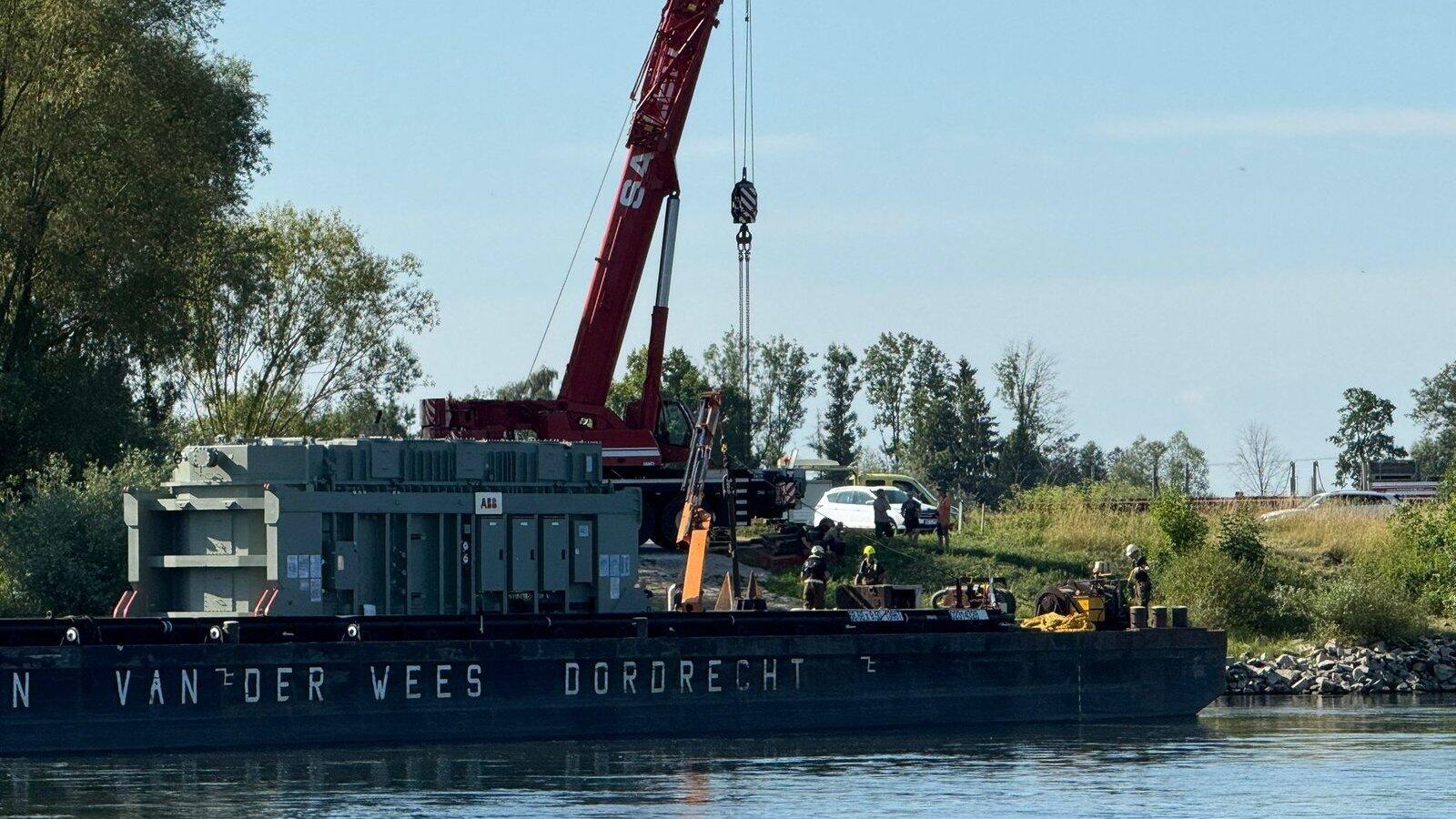 Mega-Transformator an der Donau bei Ruckasing verladen