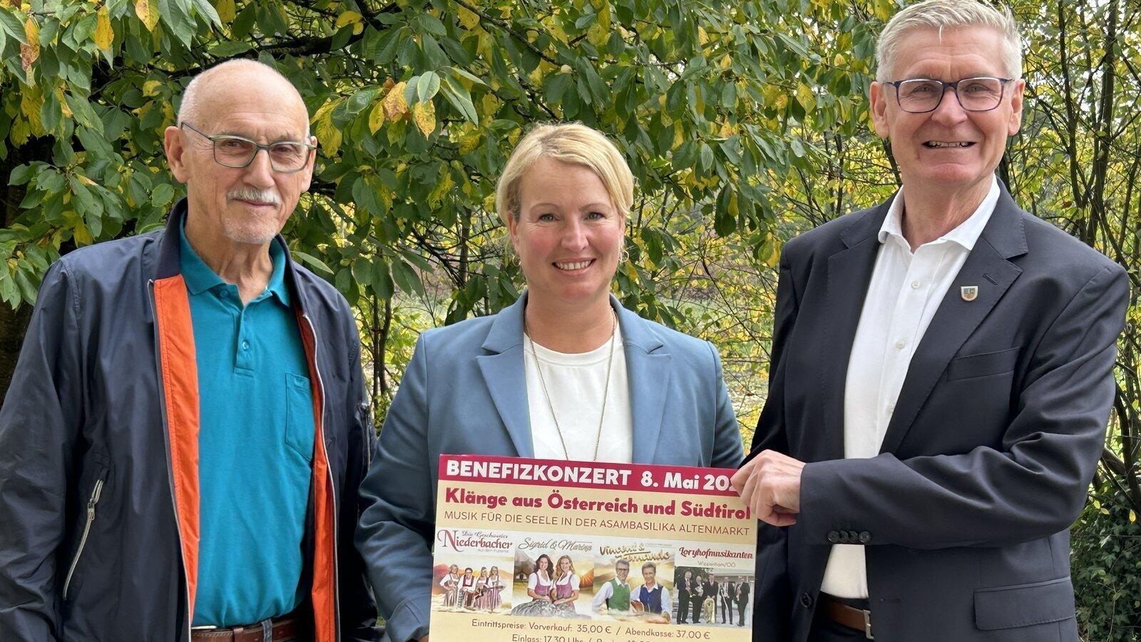 Hoffen auf viele Besucher des Benefizkonzerts: (v.l.) Organisator Hans Saller, Irene Basmer (Leitung Hospiz St. Ursula) und Fritz Gößwein (Vorsitzender des Fördervereins Kraki).
