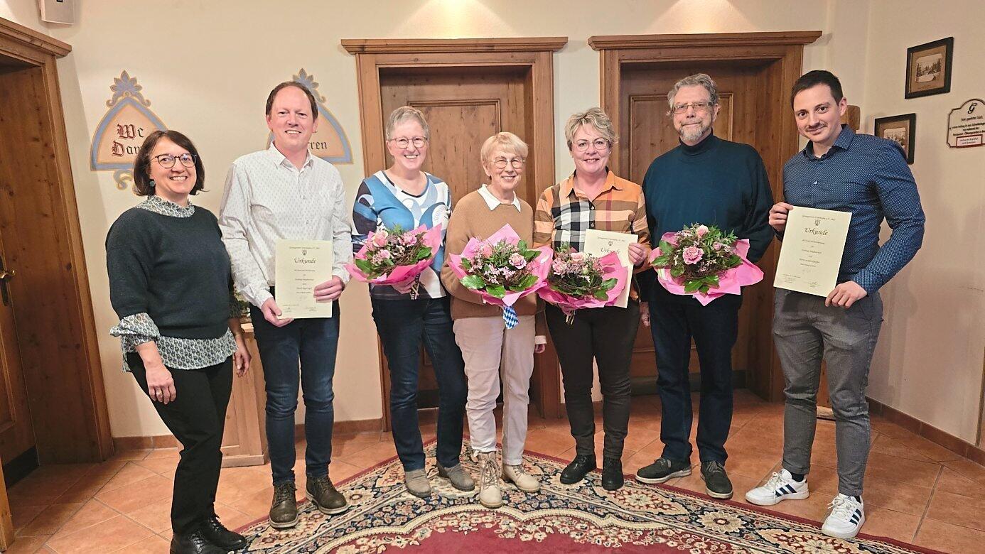 Treue Vereinsmitglieder und die ausgeschiedenen Vorstandsmitglieder wurden für ihr Engagement für den Gesangverein geehrt.