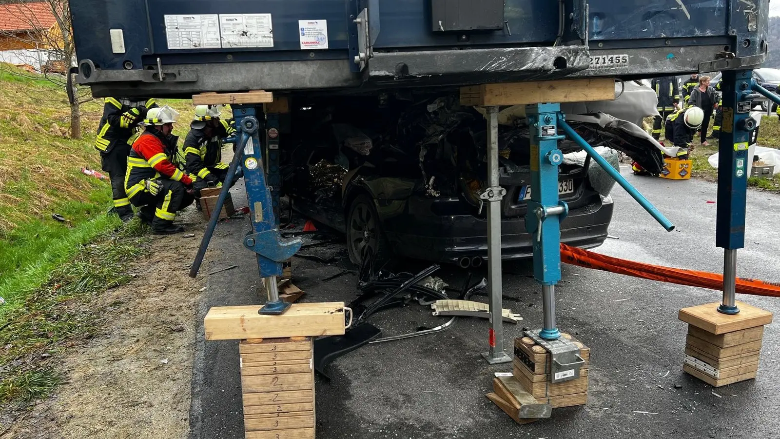 Auto fährt bei Hunding gegen geparkten Lkw-Auflieger