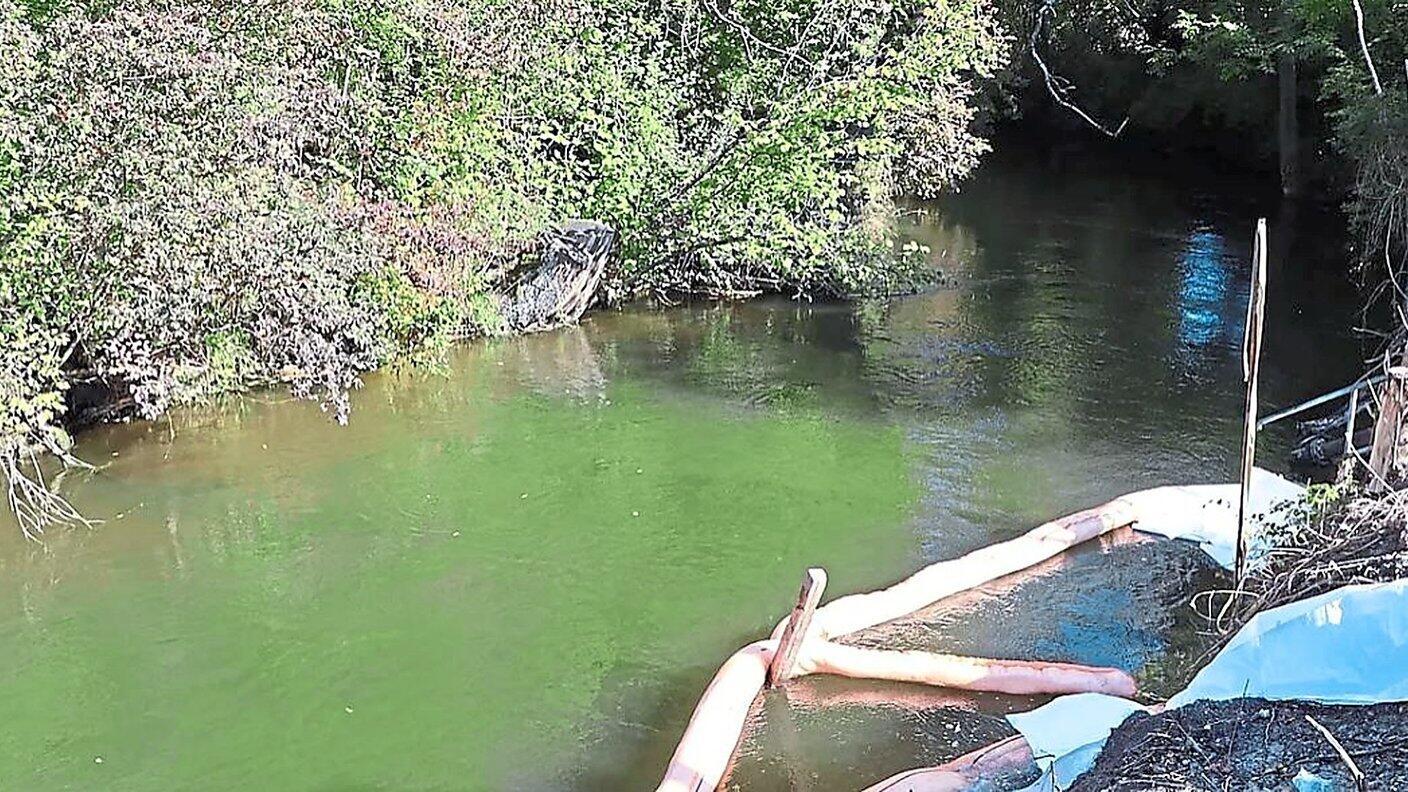 Die Wasseroberfläche des sonst klaren Mühlbaches bei Plattling wirkte plötzlich wie verzaubert - oder vielmehr befleckt von einer fremden, schillernden Schönheit.