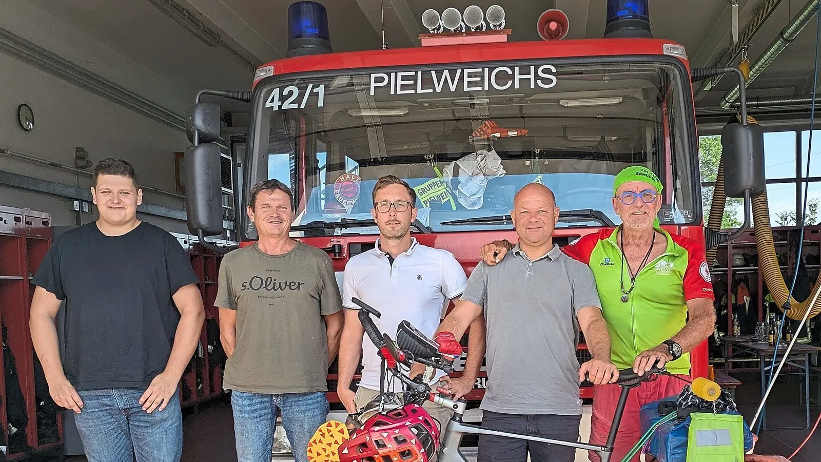 Über 4.000 Kilometer, über 30.000 Höhenmeter - der durchschnittliche Radler kann bei solchen Streckenstatistiken nur ungläubig staunen. Für Jörg Richter ist seine aktuelle Rundfahrt durch Deutschland, Österreich, Italien und Frankreich ein Abenteuer, das er so ähnlich schon mehrfach gestemmt hat. Anlass der Extremtour ist das Sammeln von Spenden für den Verein "Hand in Hand gegen Tay-Sachs und Sandhoff in Deutschland". Auf seiner Marathon-Tour wird der ehemalige Berufsfeuerwehrler vom Landesfeuerwehrverband und vielen Stationen unterstützt. Am Dienstag war der 64-Jährige nun willkommener Gast der FFW Pielweichs.