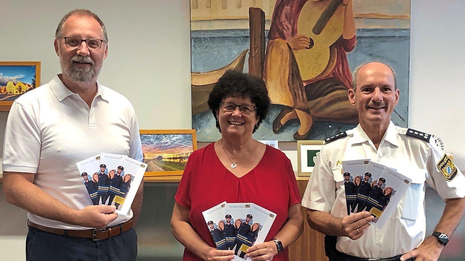 Bürgermeisterin Liane Sedlmeier und Ordnungsamtsleiter Markus Vierthaler freuen sich, dass die Sicherheitswacht aufgebaut werden kann. Federführend betreut Erster Polizeihauptkommissar das Projekt.