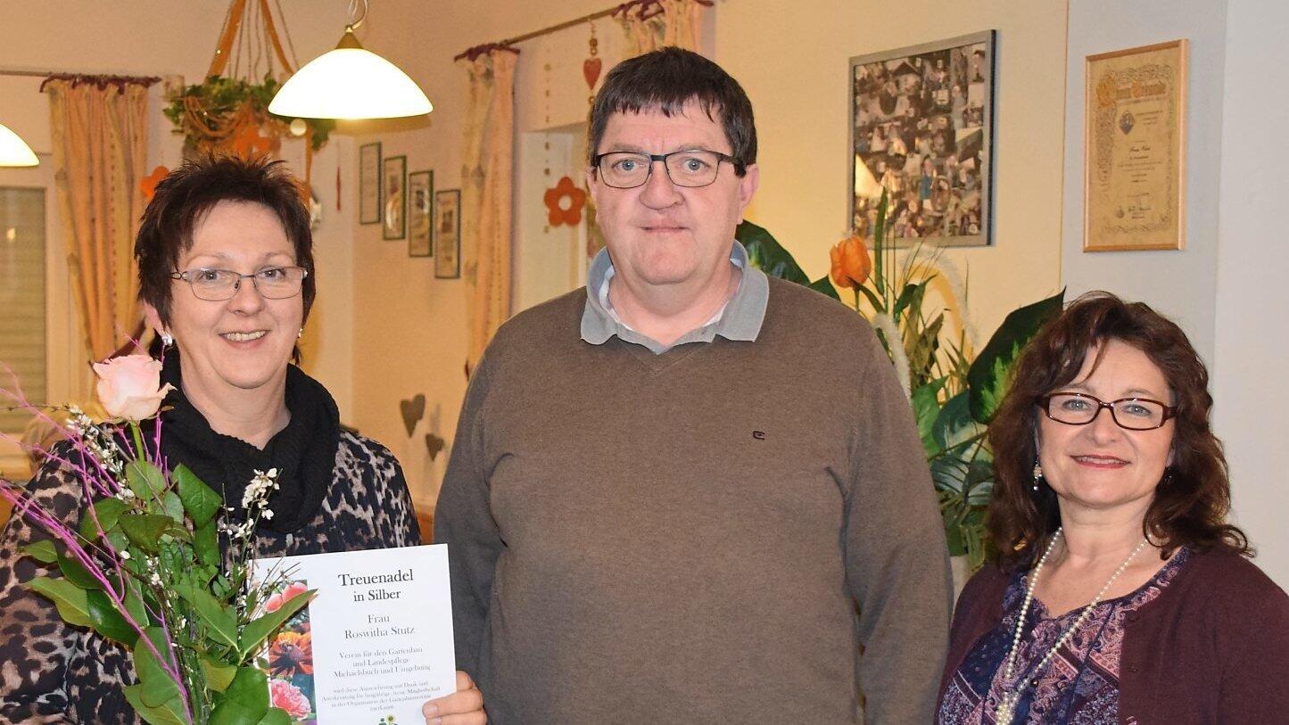 Roswitha Stutz (links) wurde für ihre 25-jährige Vereinstreue von Vorsitzenden Gerhard Feldmeier und Rita Holzbauer geehrt.