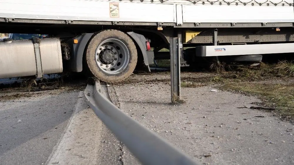 Lastwagen bleibt bei A3 an Leitplanke hängen