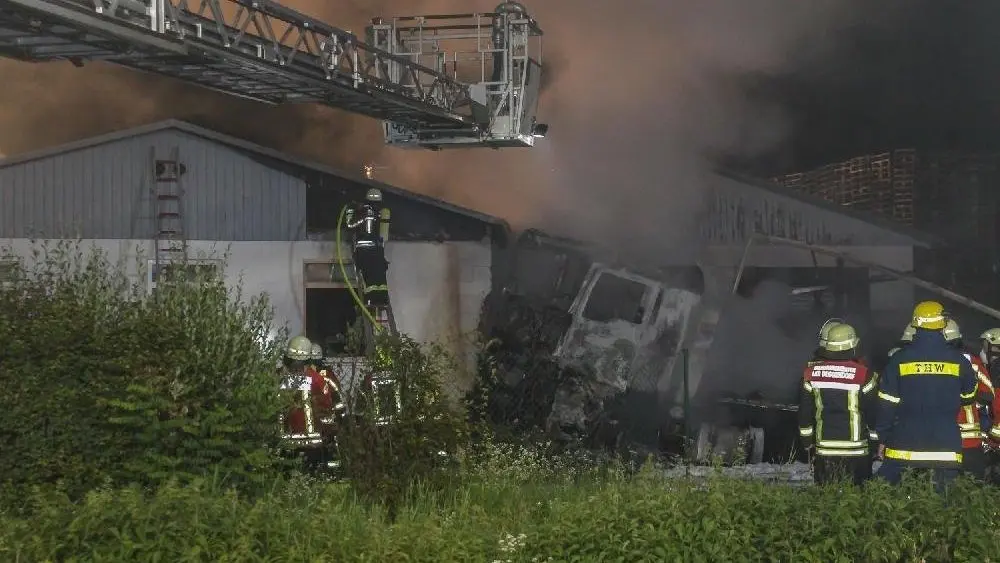 Ein brennender Lastwagen hat am Dienstagabend in Hengersberg einen Großeinsatz ausgelöst. Auch eine Lagerhalle wurde in Mitleidenschaft gezogen.