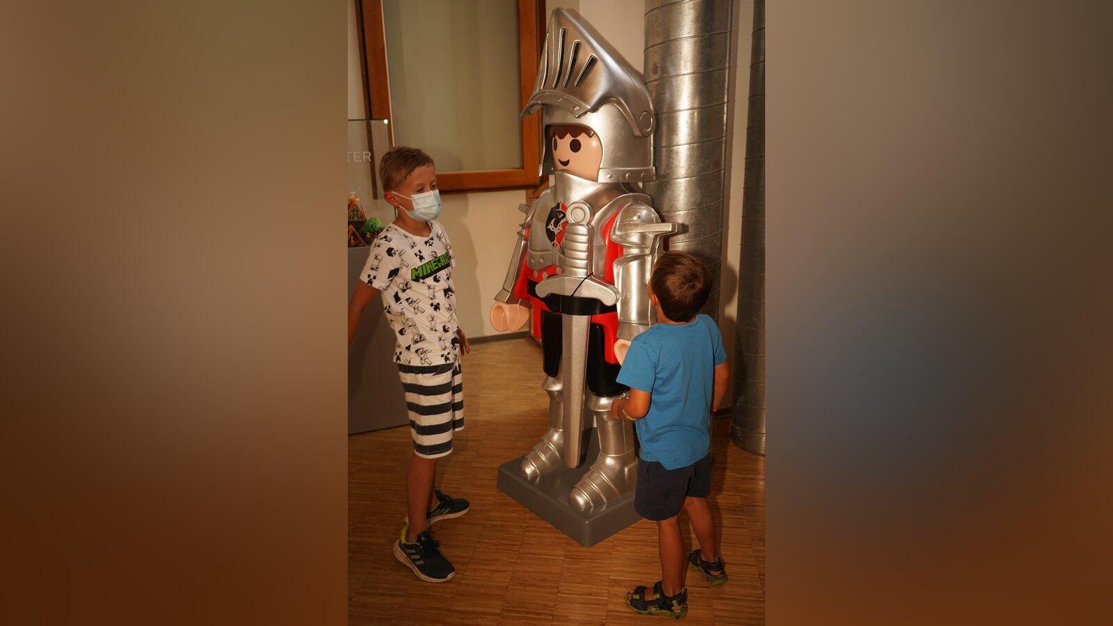 Ein lebensgroßer Playmobil-Ritter in garantiert rostfreier Rüstung: Sie ist, wie der Ritter selbst, natürlich aus Hartplastik.