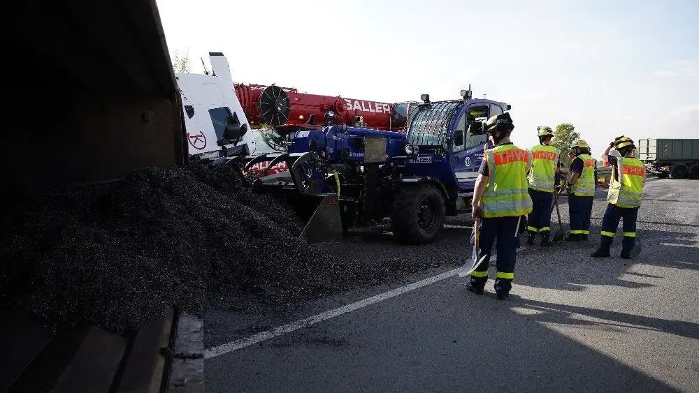 Der Lkw fiel um und ein großer Teil der geladenen Eisenspäne verteilte sich auf der Autobahn. Wegen des Unfalls waren beide Fahrspuren nach Passau und Regensburg gesperrt, der Verkehr konnte lediglich auf den Standstreifen vorbeigeleitet werden. Die örtlichen Feuerwehren kümmerten sich zusammen mit der Autobahnmeisterei Pankofen um die Umleitung des Verkehrs, das THW barg die verschüttete Ladung.