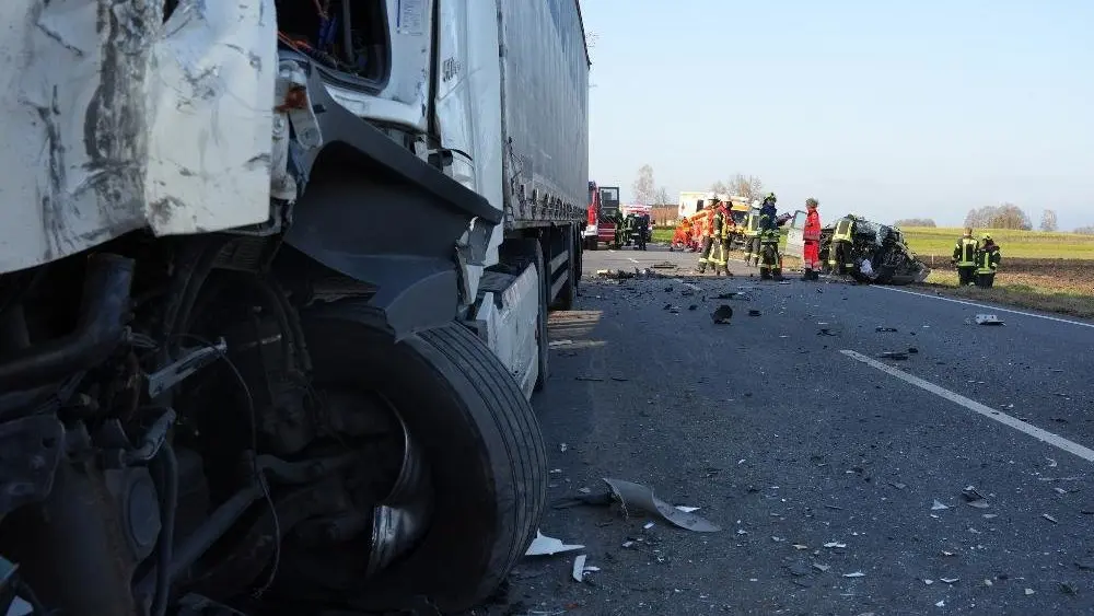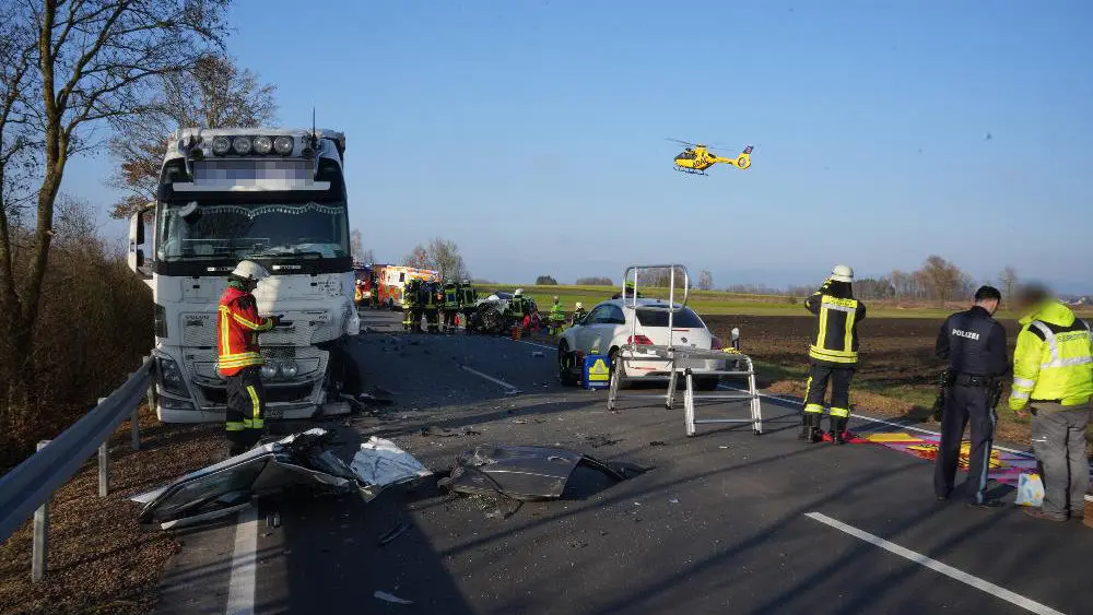 Ein Auto und ein Lastwagen sind auf der B8 zwischen Osterhofen und Künzing zusammengestoßen.