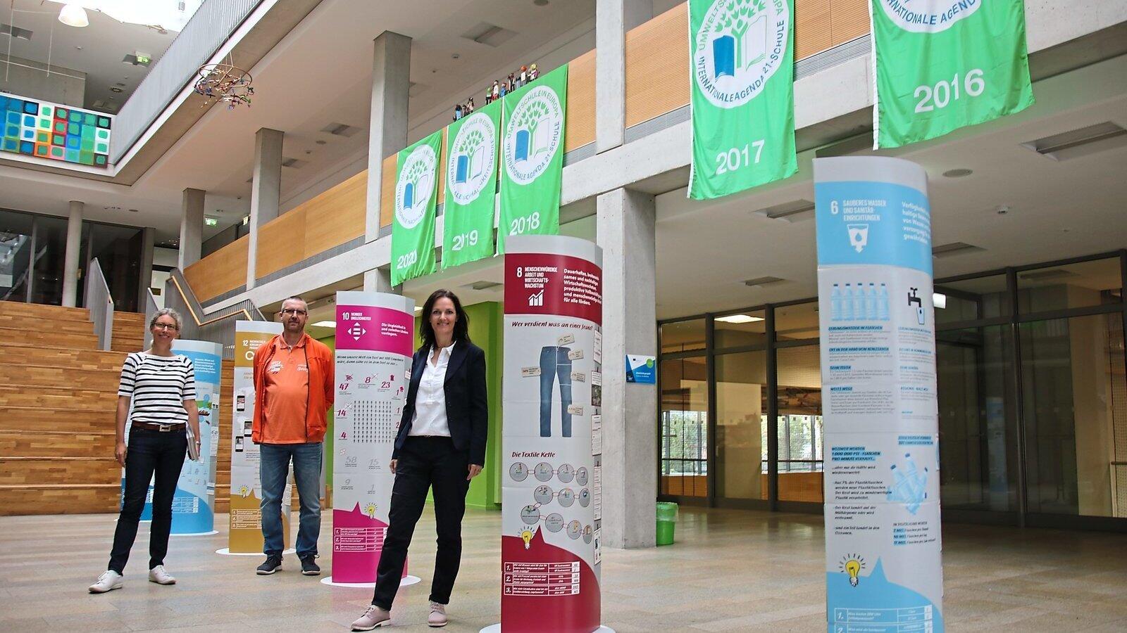 Sie präsentierten die Ausstellung im Realschulfoyer: Lehrerin Anita Goller, Hubert Feldmeier vom Elternbeirat und Direktorin Waltraud Eder.