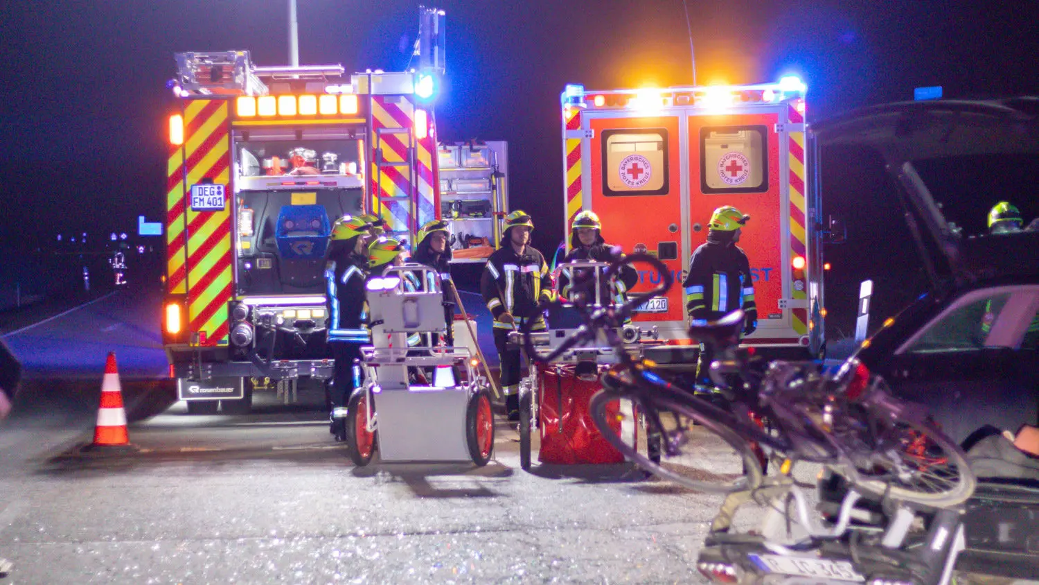 Einsatzkräfte der Mettener Feuerwehr rückten an, banden ausgelaufene Betriebsmittel und unterstützten die Polizei bei der Verkehrslenkung. Der Unfallbereich war dabei bis zur Räumung der Unfallstelle gesperrt. Neben Beamten der Deggendorfer Polizei war der Rettungsdiest mit drei Rettungswägen, zwei Notärzten und einem Einsatzleiter vor Ort, um die Verletzten zu versorgen.
