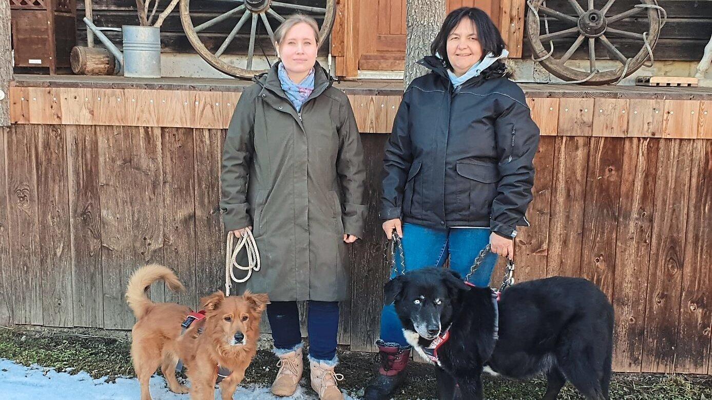 Steffie Mook (links) mit ihrem Pflegehund Johnny und Xenia Mader mit ihrem Hundesenior Blacky. Beide Hunde stammen aus Griechenland.