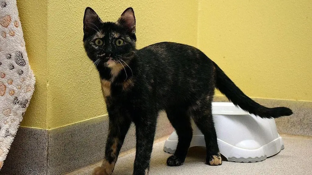 Helena (geboren etwa September 2025) kam mit ihrer gesamten Familie als Fundtier ins Tierheim. Nach der Behandlung gegen Endo- und Ektoparasiten sowie einer Quarantänezeit durfte sie in den Vermittlungsbereich umziehen. Die Eltern und ein Bruder haben bereits ein neues Zuhause gefunden. Helena ist eine kleine, zierliche Katze mit großer Neugier. Anfangs hat sie noch etwas Angst vor neuen Menschen und lauten Situationen. Ihr Mut hilft ihr aber oft, diese Angst zu überwinden. Beim Spielen mit Katzenspielzeug zeigt sie viel Freude. Bei Helena stehen noch einige Untersuchungen aus, die erst möglich sind, wenn sie etwas größer ist. Die kleine Schildpatt-Dame hat Probleme mit ihren Knien, was ihr Gangbild verändert. Für Helena wird ein Zuhause mit späterem sicheren Freigang gesucht. Sie möchte mit neuen oder bereits bekannten Katzenfreunden zusammenleben. Kinder sind kein Problem, wenn diese bereits verstehen, dass Helena Zeit braucht, um Nähe zuzulassen.
