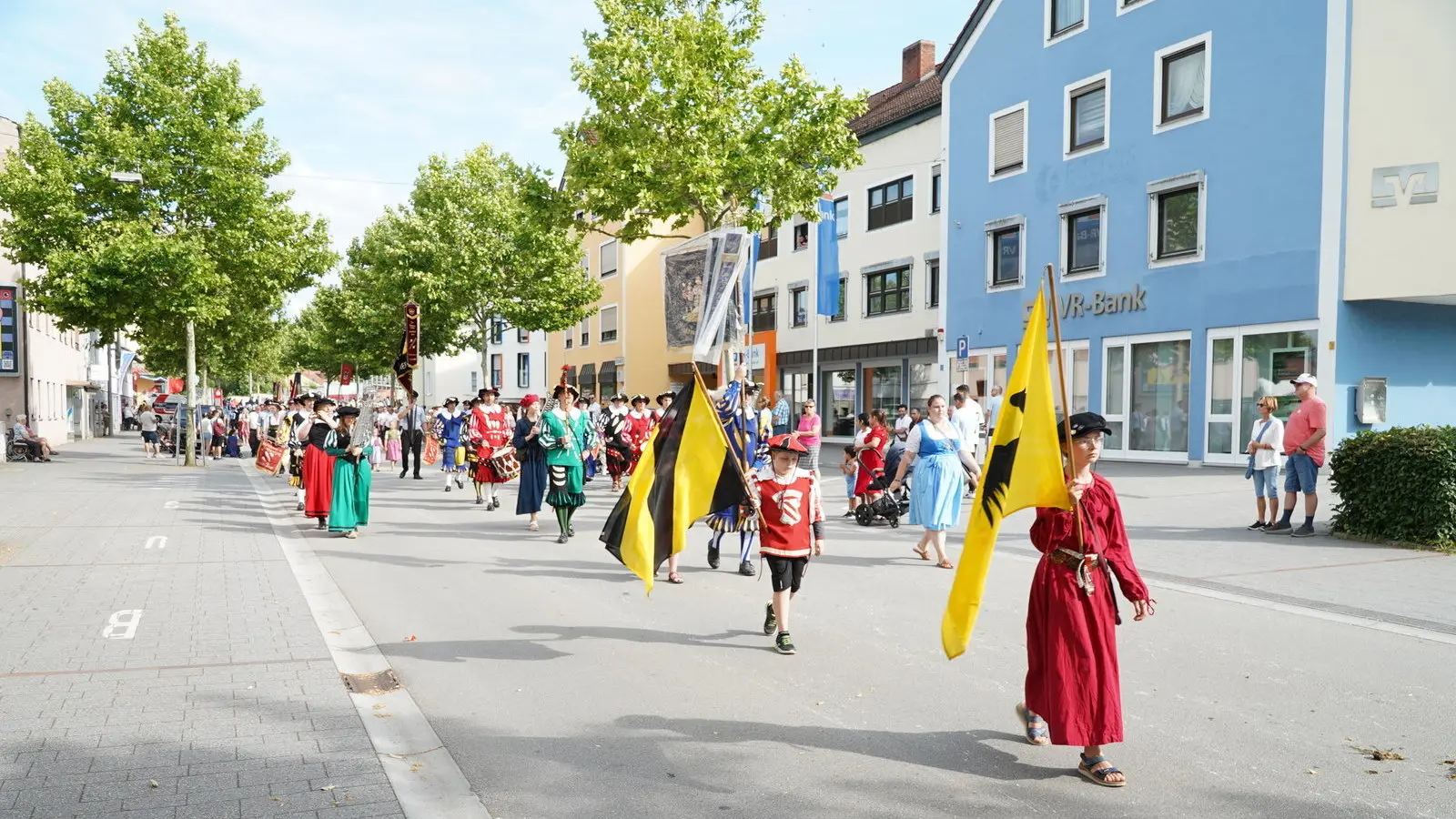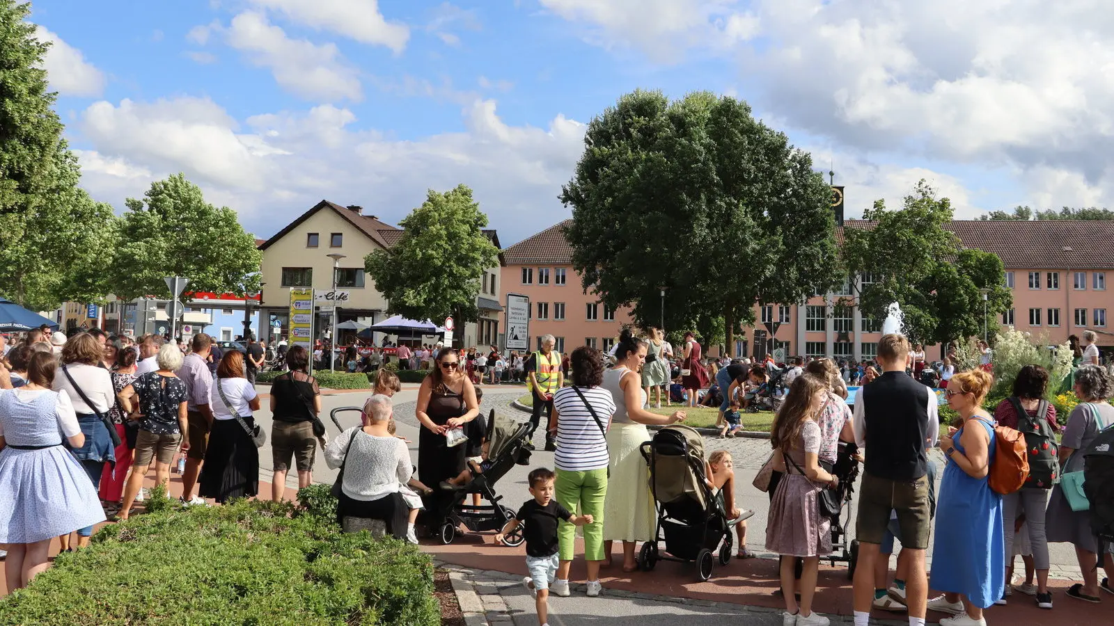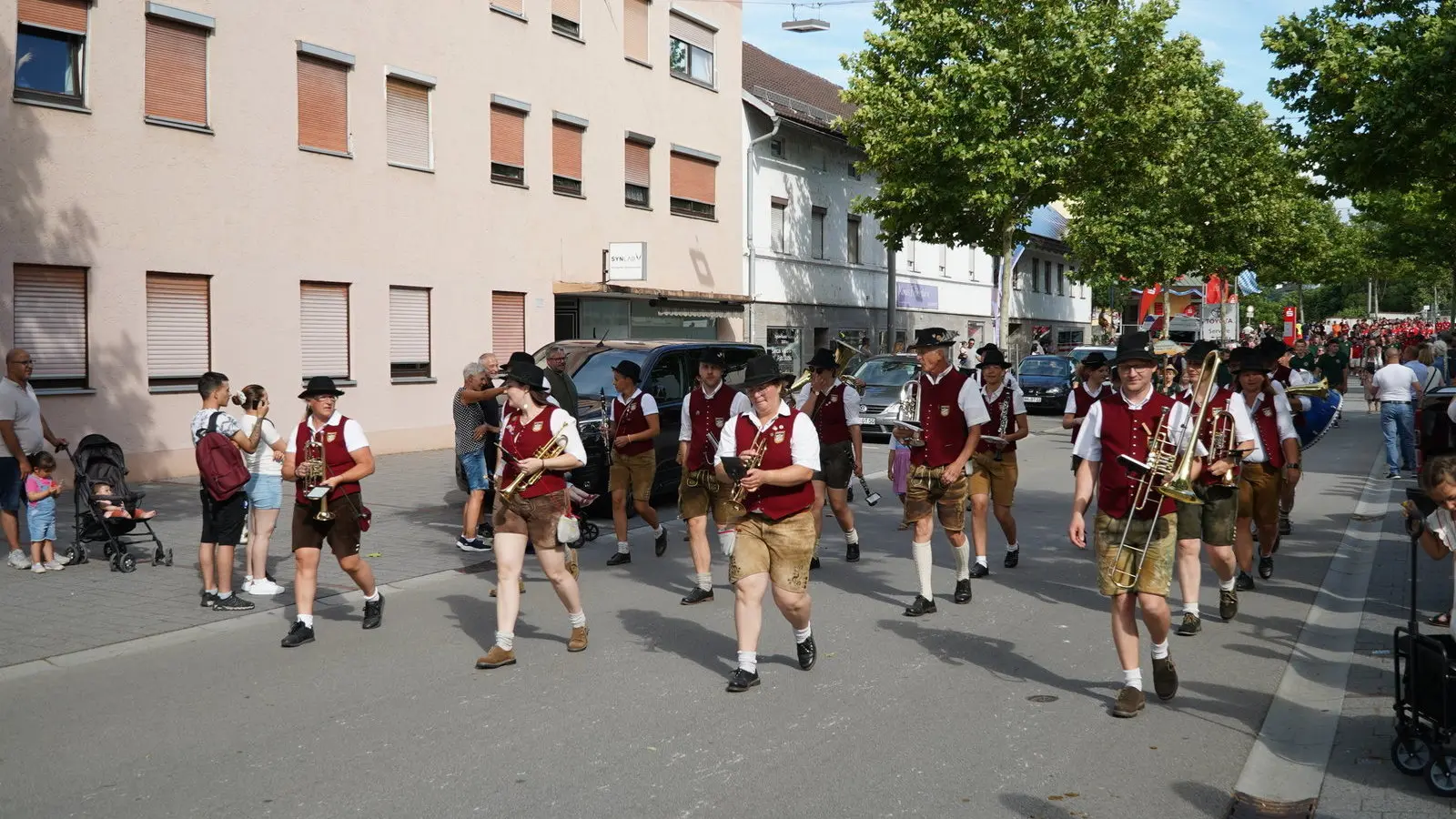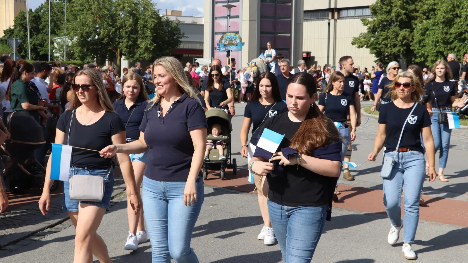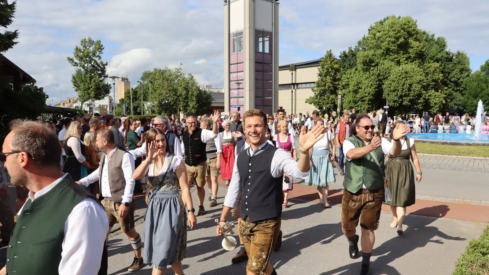 Weil die Isarbrücke saniert wird, startete der Auszug in der Gärtnerstraße. Die rund 65 Gruppen zogen – vorbei an den zahlreichen Besuchern – über die Straubinger Straße weiter zum Dr.-Schlögl-Platz und über die Harburger Straße zum Sportgelände. Dort gab es ein Standkonzert aller teilnehmenden Musikkapellen, darunter der Stadtkapelle Landau, des Spielmanns- und Fanfarenzug Landau, der Musikkapelle Großköllnbach und der Wallersdorfer Marktmusikanten.