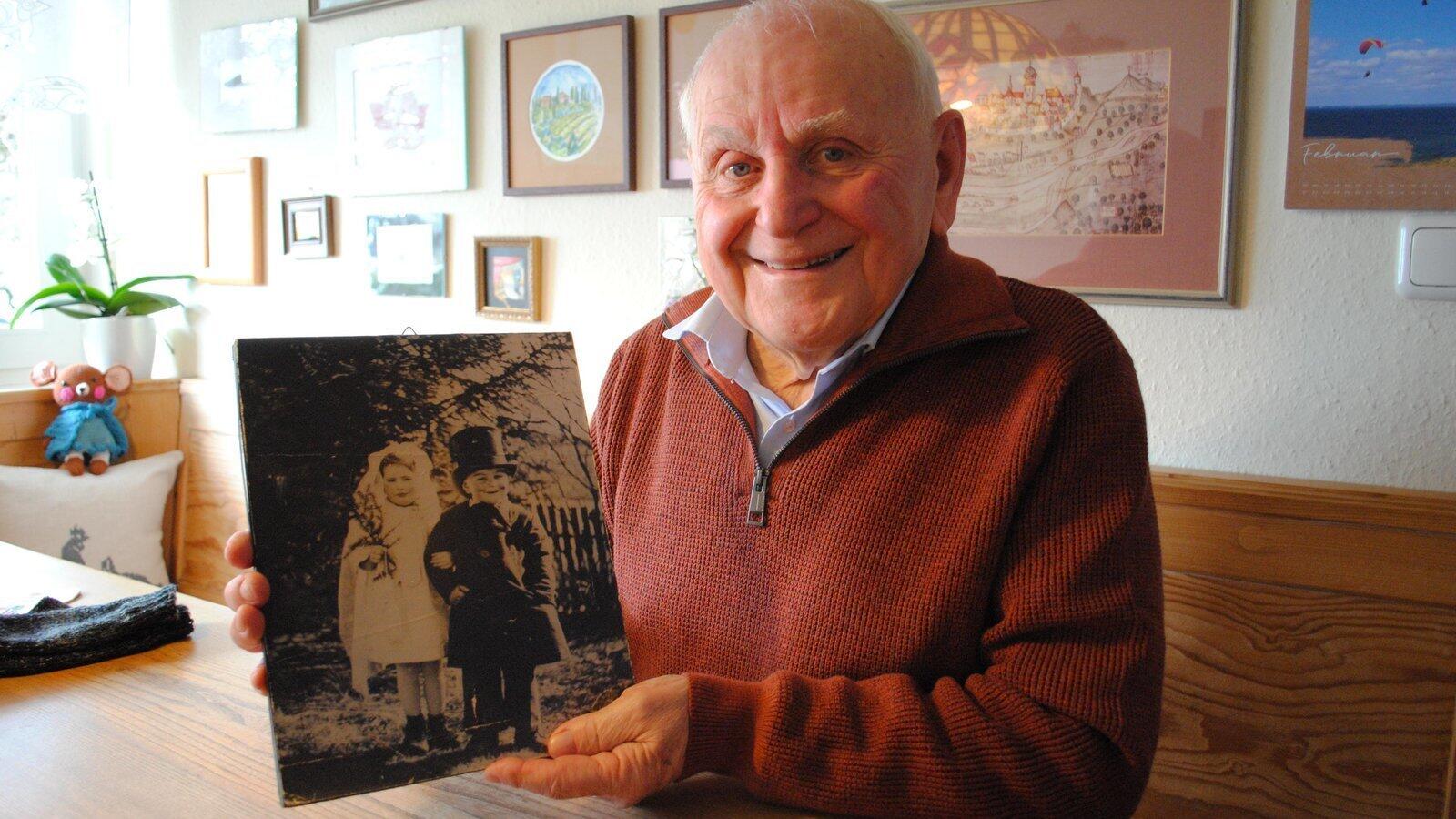 Unzählige alte Fotos hat Nik Söltl in den vergangenen Jahrzehnten gesammelt und archiviert. Eines seiner Lieblingsbilder stammt aus der eigenen Familie: Es zeigt ihn und Nachbarskind Resi als Brautpaar im Fasching.