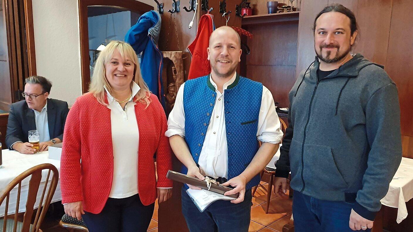 Birgit Scholz und Stefan Ramoser bedanken sich bei Bräu Michael Sturm für die erzählte Geschichte des Gasthofes "Zur Post".