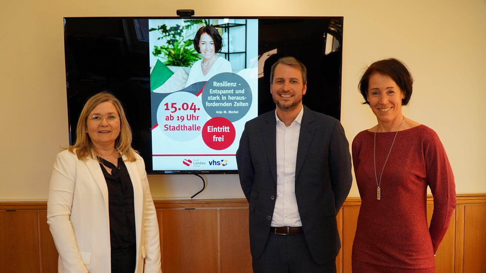 VHS-Geschäftsführerin Manuela Wälischmiller (v. l.) und Bürgermeister Matthias Kohlmayer tauschten sich mit Referentin Anja Merkel aus.