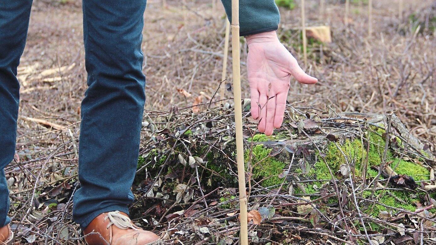 Ein Buchensetzling auf einer Anpflanzfläche bei Höcking: Mischwälder haben einige Vorteile, sagt Förster Hubert Hobmaier. Dies gelte auch im Hinblick auf den Klimawandel.