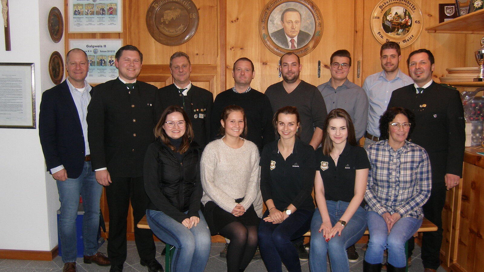 Der neu gewählte Vorstand mit Wahlleiter Thomas Etschmann (von links stehend), Michael Habersbrunner, Andreas Scharl, Alexander Erndl, Michael Schachtl, Jonas Kutscherauer, Peter Waldherr und Matthias Meier. Sitzend von links: Magdalena Mattis, Josephine Erndl, Antonia Schuster, Anna Mattis und Michaela Erndl..