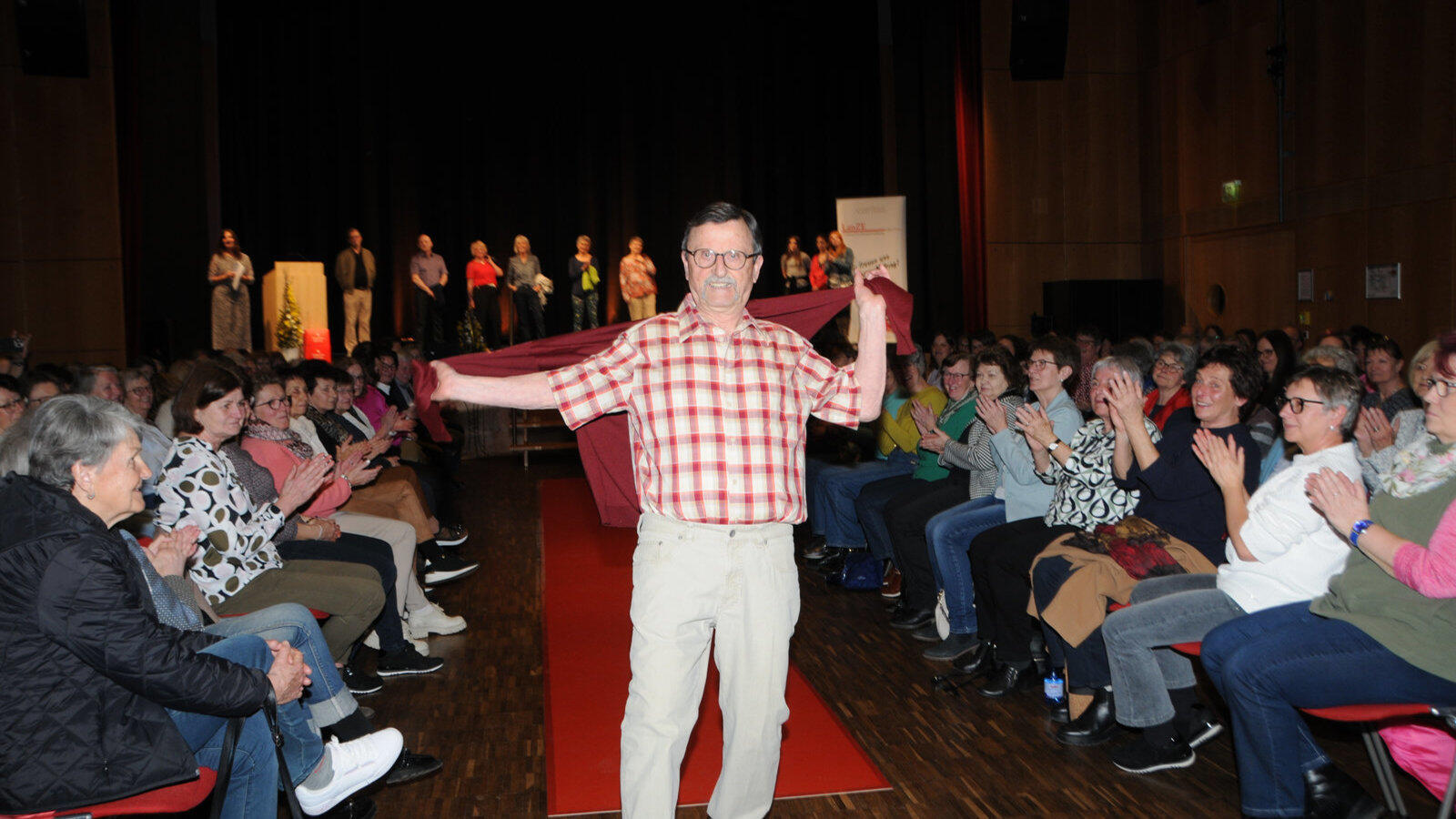 Elf Models präsentierten am Donnerstag Kleidung aus dem Secondhandladen von „Lanze“, dem Zuverdienstprojekt unter der Trägerschaft der Caritas, und zeigten, dass Nachhaltigkeit und Stil zusammenpassen.