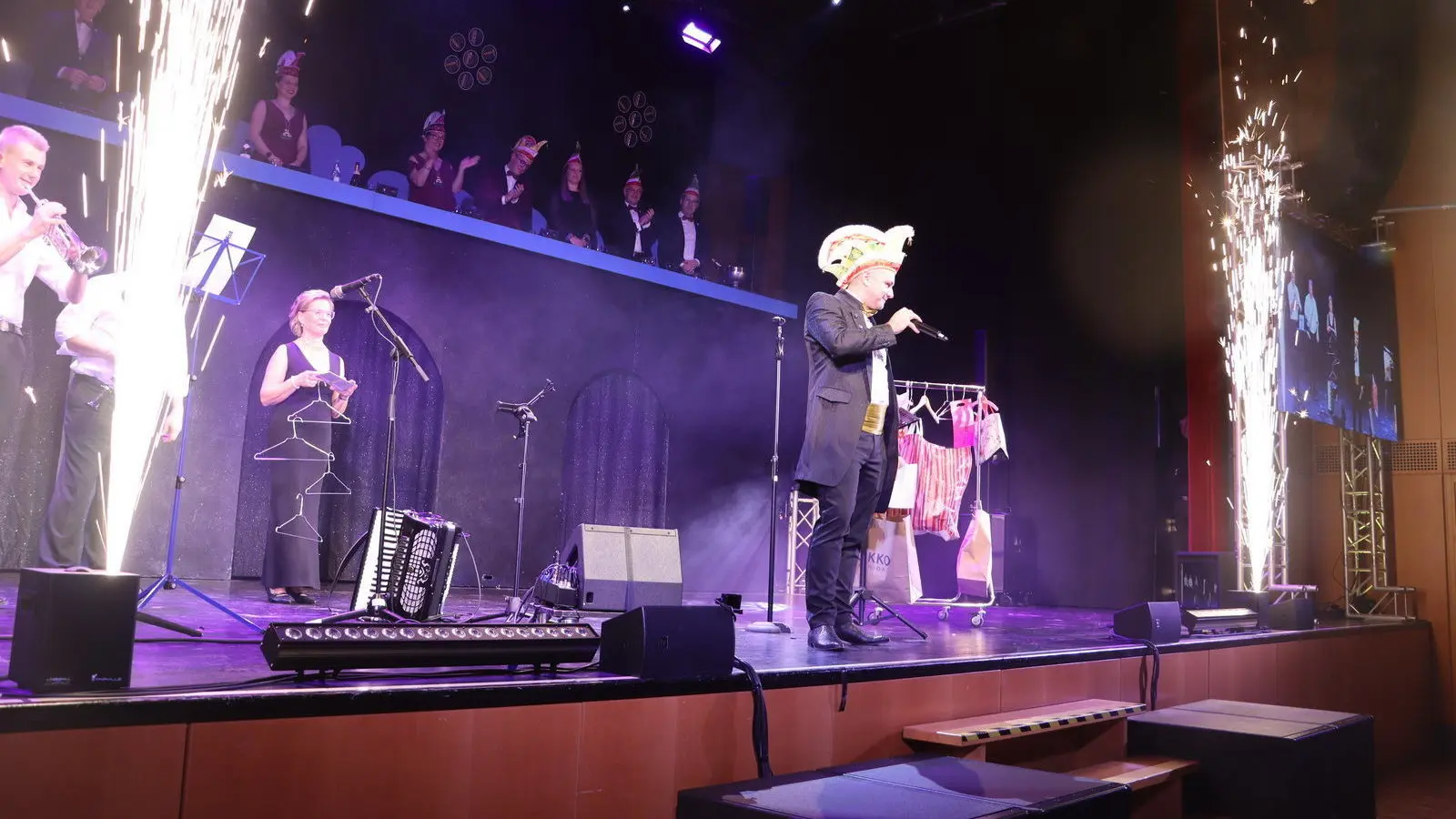 Los ging es mit dem Auftritt von „Clown“ Markus Tschöp, der wie immer kein Blatt vor den Mund nahm: Von kreativen Namen für kleine Nervensägen über die sich hinziehende Isarbrückensperrung bis hin zum Thema Kommunalwahl – die Pointen saßen und sorgten für Gelächter im Publikum. Ebenfalls begeisterte die neue Narrhalla-Band, gegründet von Simon Csokan. Sie brachte mit ihren Interpretationen von Evergreens Stimmung in die Stadthalle. Zu Italo-Hits wirbelten die Tänzerinnen der Jugendgruppe des SSC Landau über die Bühne.