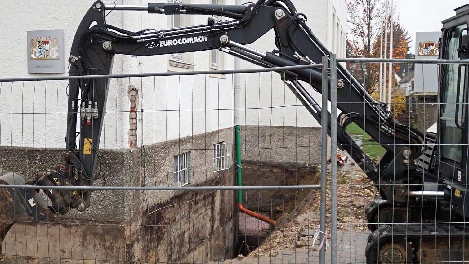 Wer dieser Tage entlang der Hochstraße das Amtsgericht passiert, dem dürfte der Bagger vor dem Eingangsbereich des Gebäudes ins Auge stechen.