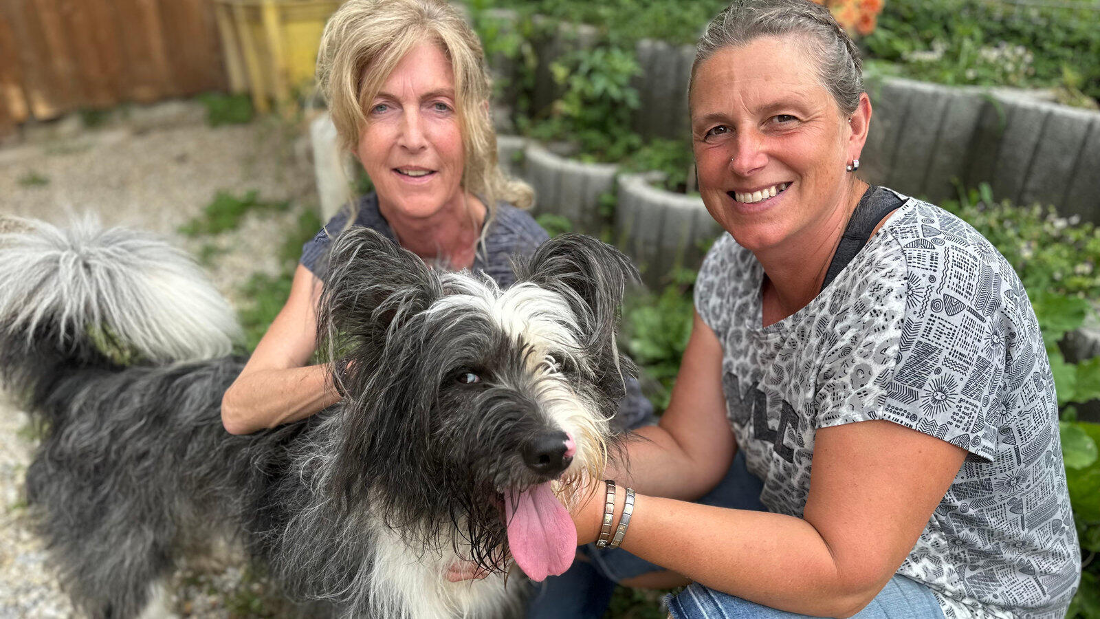 Diego mit seinen Liebsten: Beschäftigte Kerstin (v.l.) und Interimsleiterin des Gnadenhofs Manuela Hochwimmer