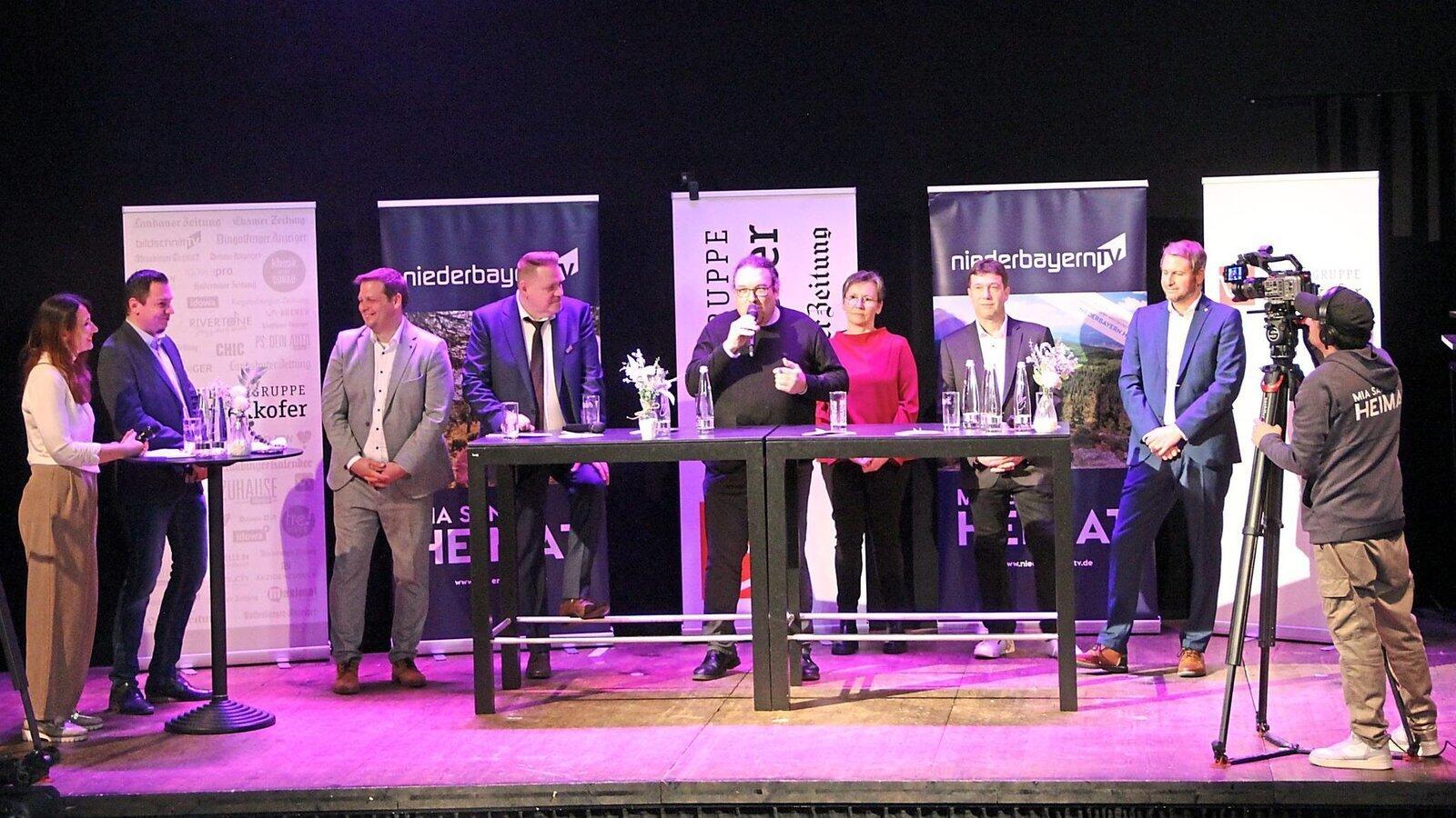 In vier Themengebiete hatten die Moderatoren Claudia Lorenz und Johannes Bäumel ihre Fragen beim Polit-Talk von Landauer Zeitung und NiederbayernTV am Dienstagabend im KuKi aufgeteilt.