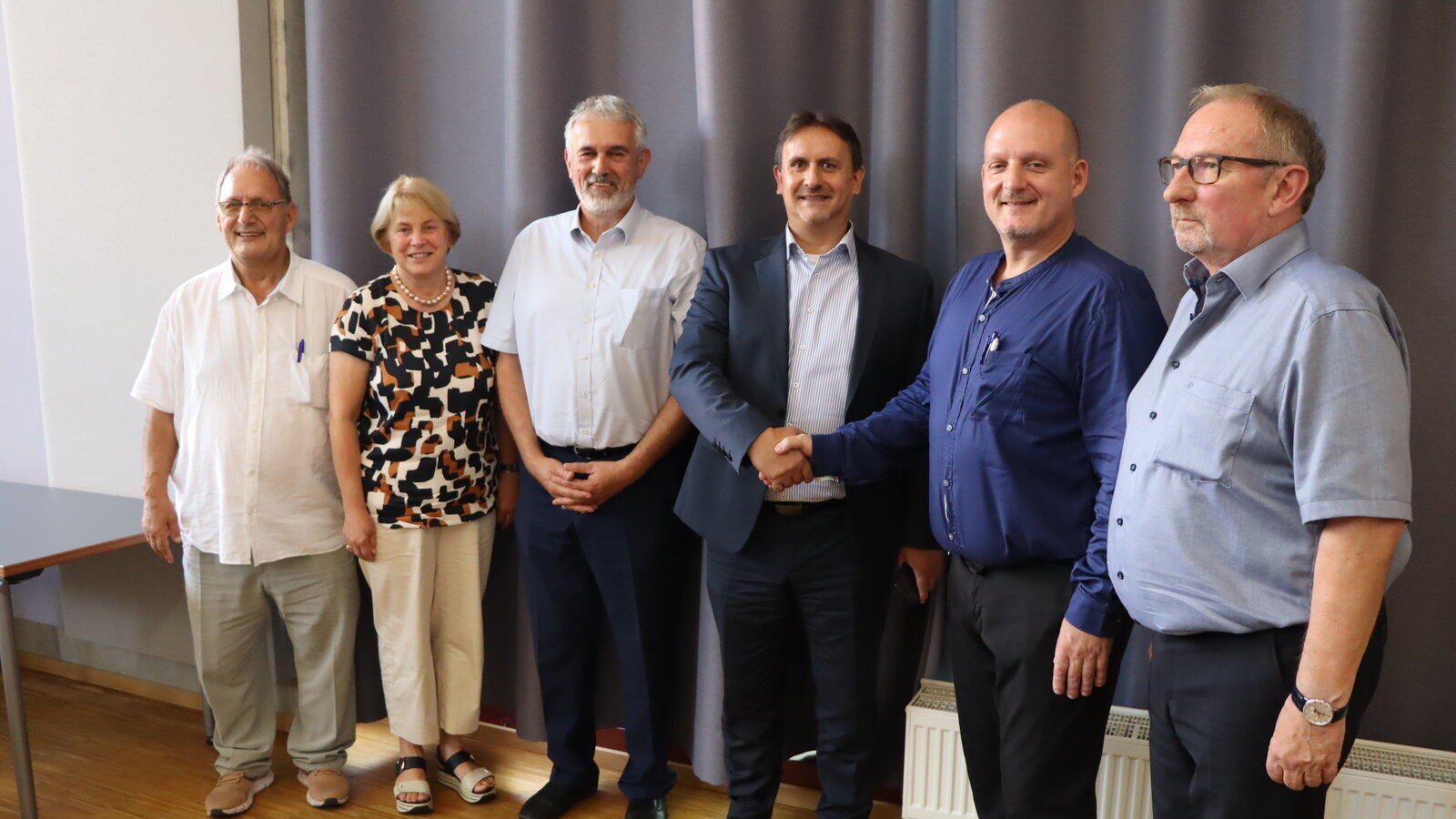 Mit der frohen Botschaft, dass WahrenWert Zukunft hat (v.l.): Dr. Ulrich Heller, Geschäftsführer BVIK Bayern eGmbH, neuer Träger, stellvertretende Landrätin Barbara Unger, Markus Wimmer, Leiter des Amts für Soziale Dienste, Harald Senft, Geschäftsführer von der Max- Aicher-Stiftung, dem bisherigen Träger der WahrenWert-Kaufhäuser, Thomas Heller, Geschäftsführer des Mutter-Unternehmens BVIK eGmbH mit Sitz in Köthen (Sachsen-Anhalt) sowie Thomas Lobinger, Geschäftsführer Kaufhaus WahrenWert Straubing.