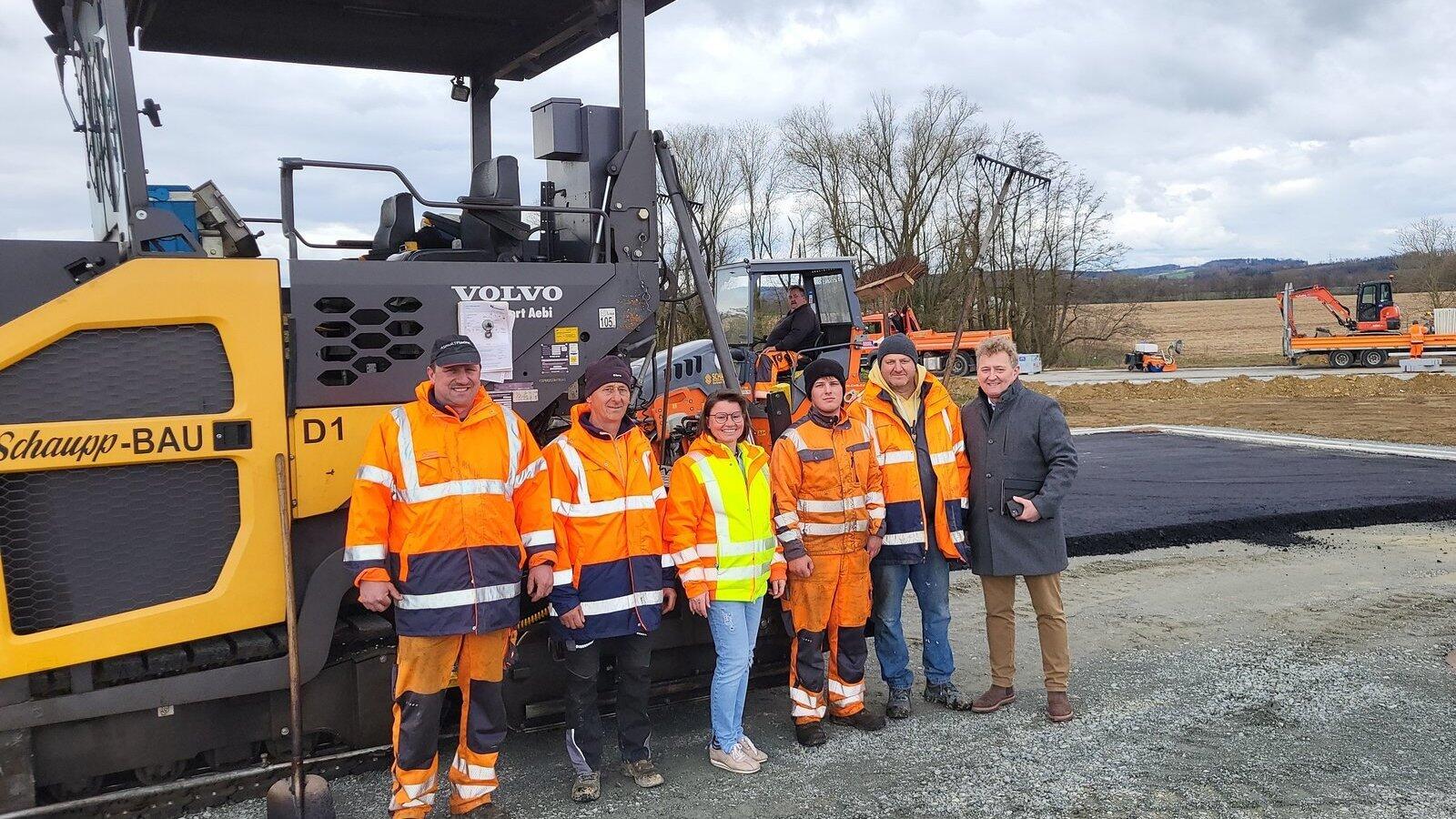 Gottfried Lorenz (v. l.), Karl Weber, Sabine Forstner, Daniel Baumgärtler, Adrian Muntiano und Bürgermeister Josef Beham