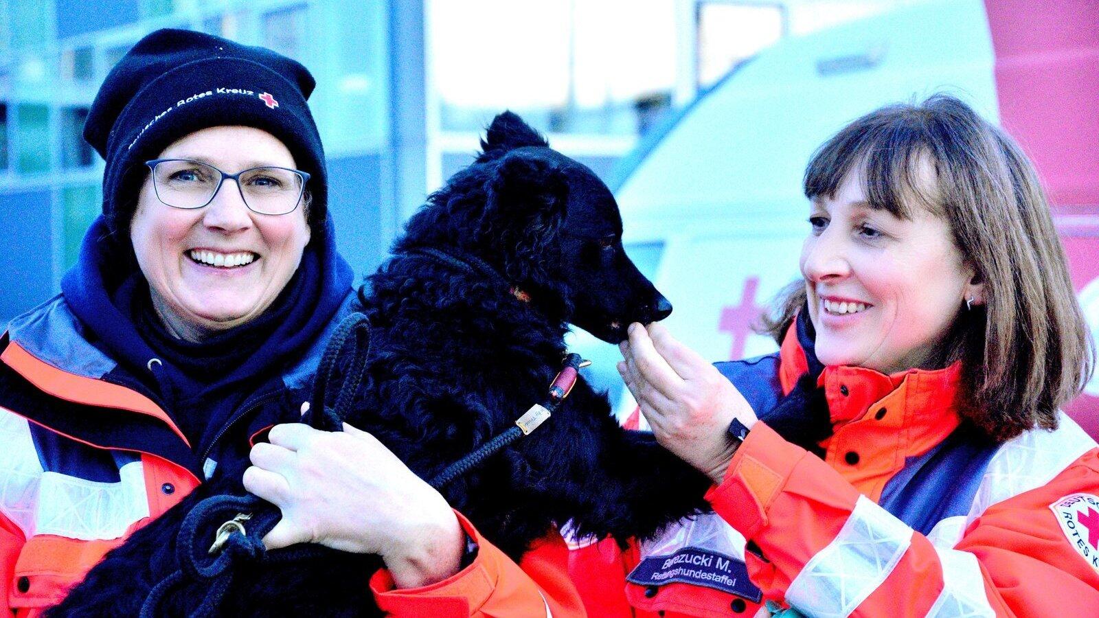 Für eine erfolgreiche Suche durften sich die Rettungshunde ein Leckerli, eine sogenannte "Bestätigung" schmecken lassen.