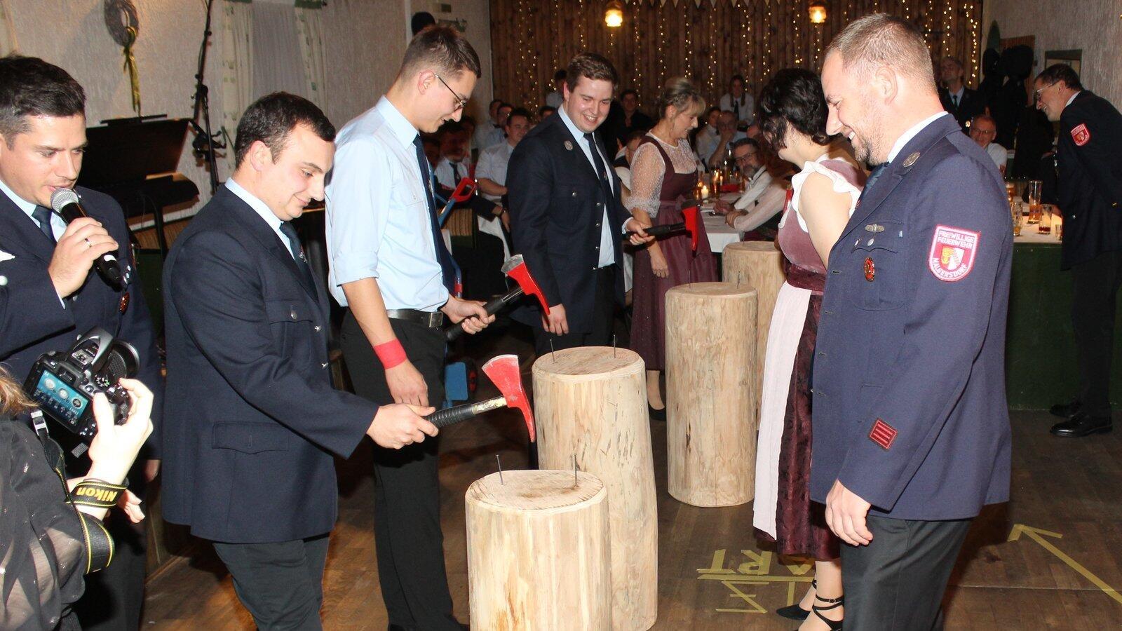 „Gar nicht so einfach, den Nagel mit der spitzen Seite der Feuerwehraxt gut zu treffen“, stellten die Probanden bei diesem Test fest.