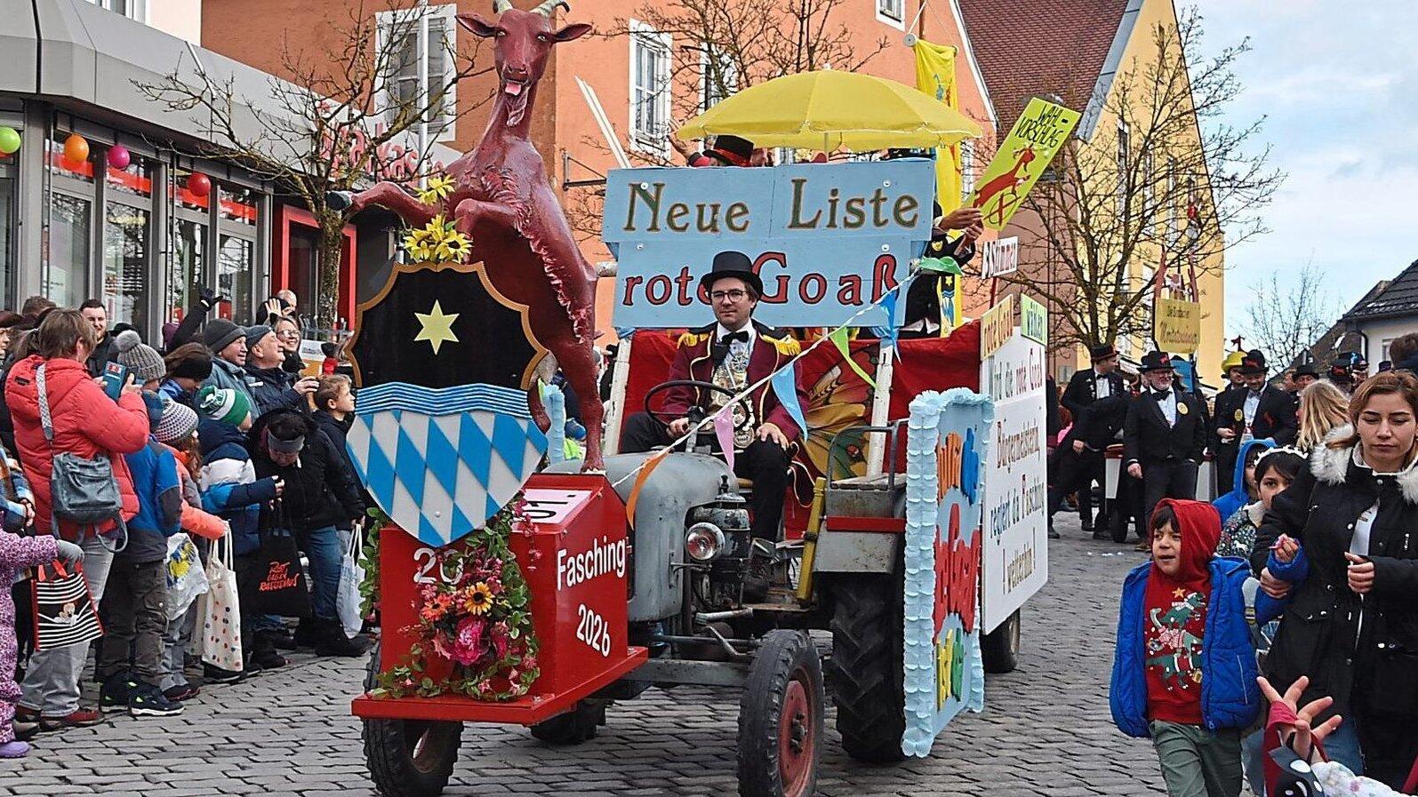 Die „rote Goaß“ führte den Rosenmontagsumzug in Simbach an