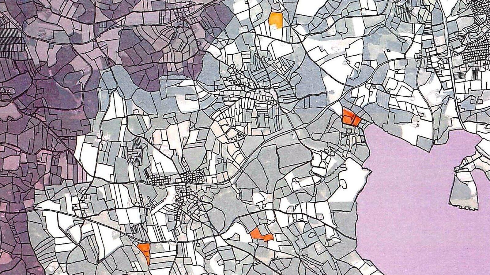 Diese vier gelb/orange markierten Flächen möchte die Stangl GmbH & Co. Gemüse KG mit Freiflächen-Photovoltaikanlagen bebauen: Lindach (von oben im Uhrzeigersinn), Unterkuglöd, Engerthal und Pirka.