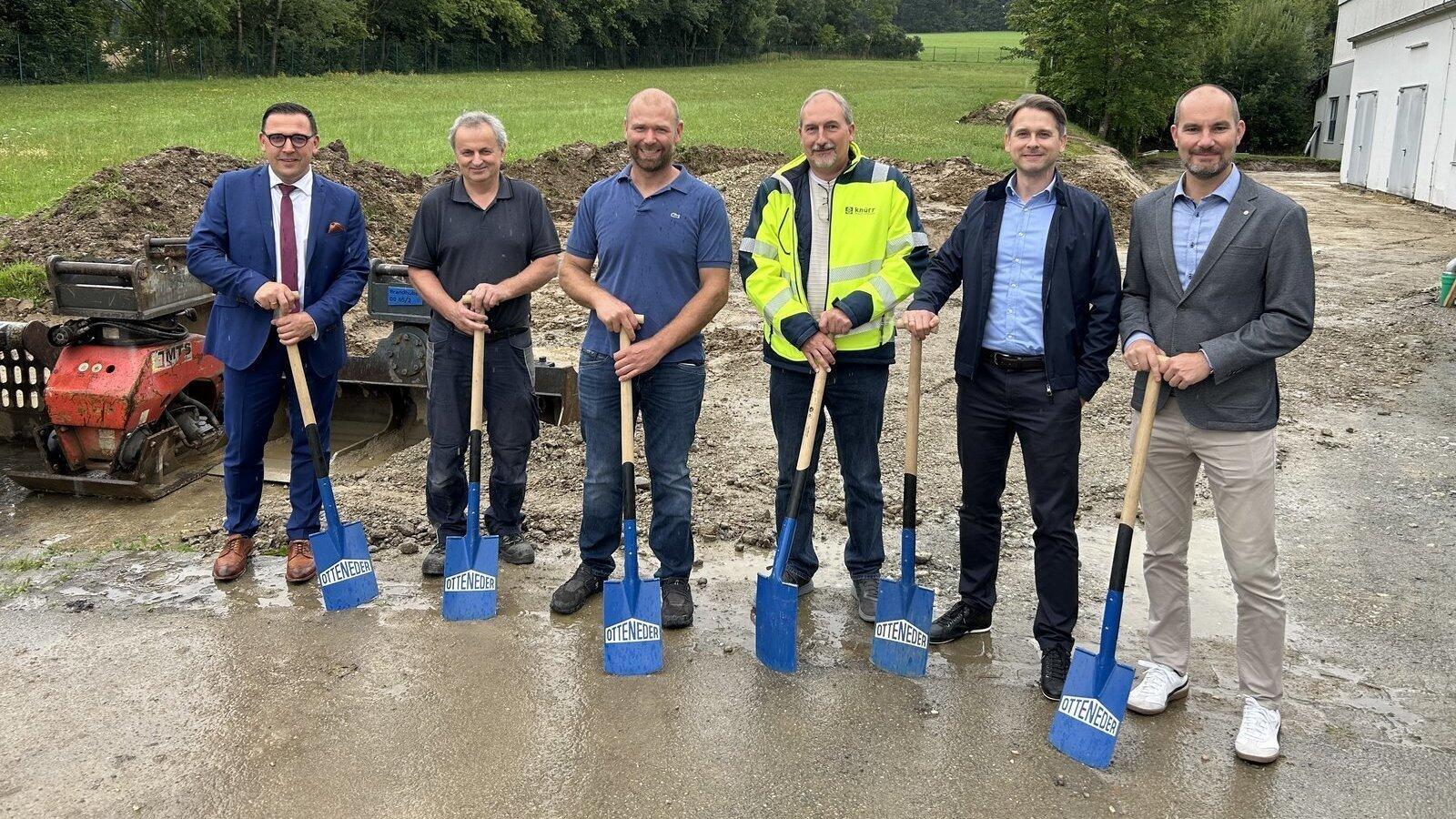Christoph Brunner (v. l.), Ferdinand Wasmeier, Max Stadler, Mario Einkammerer, Tim Holzapfel und Bernhard Geier beim symbolischen Spatenstich