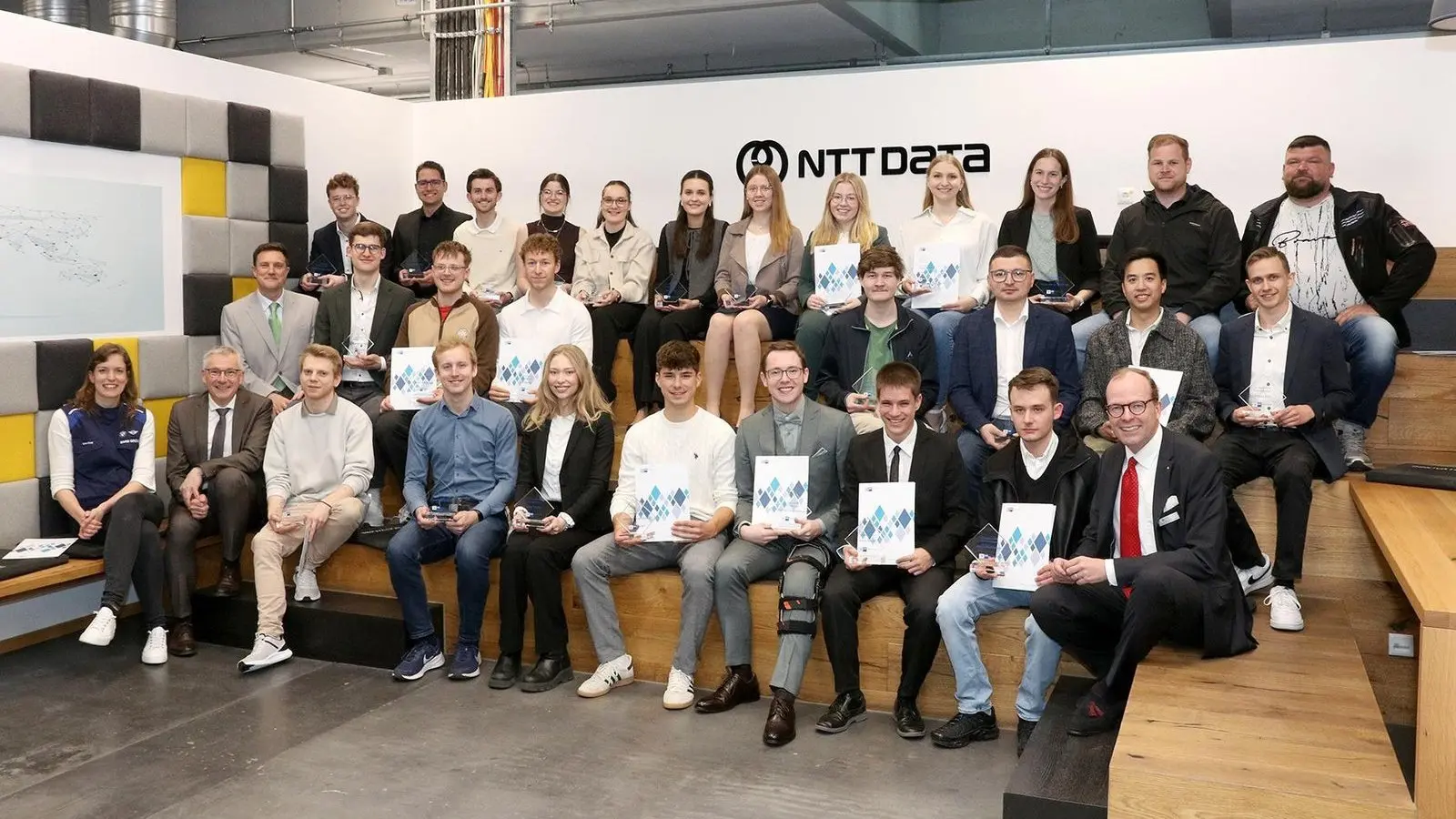 Viel Lob für die Prüfungsbesten aus den Landkreis Dingolfing-Landau gab es von IHK-Vizepräsident Max-Georg Graf von Arco auf Valley (vorne, r.), Landrat Werner Bumeder (vorne, 2. v. l.) und Stanislav Postruznik, Leiter der Dingolfinger Berufsschule (M., l.).