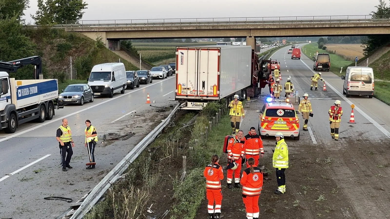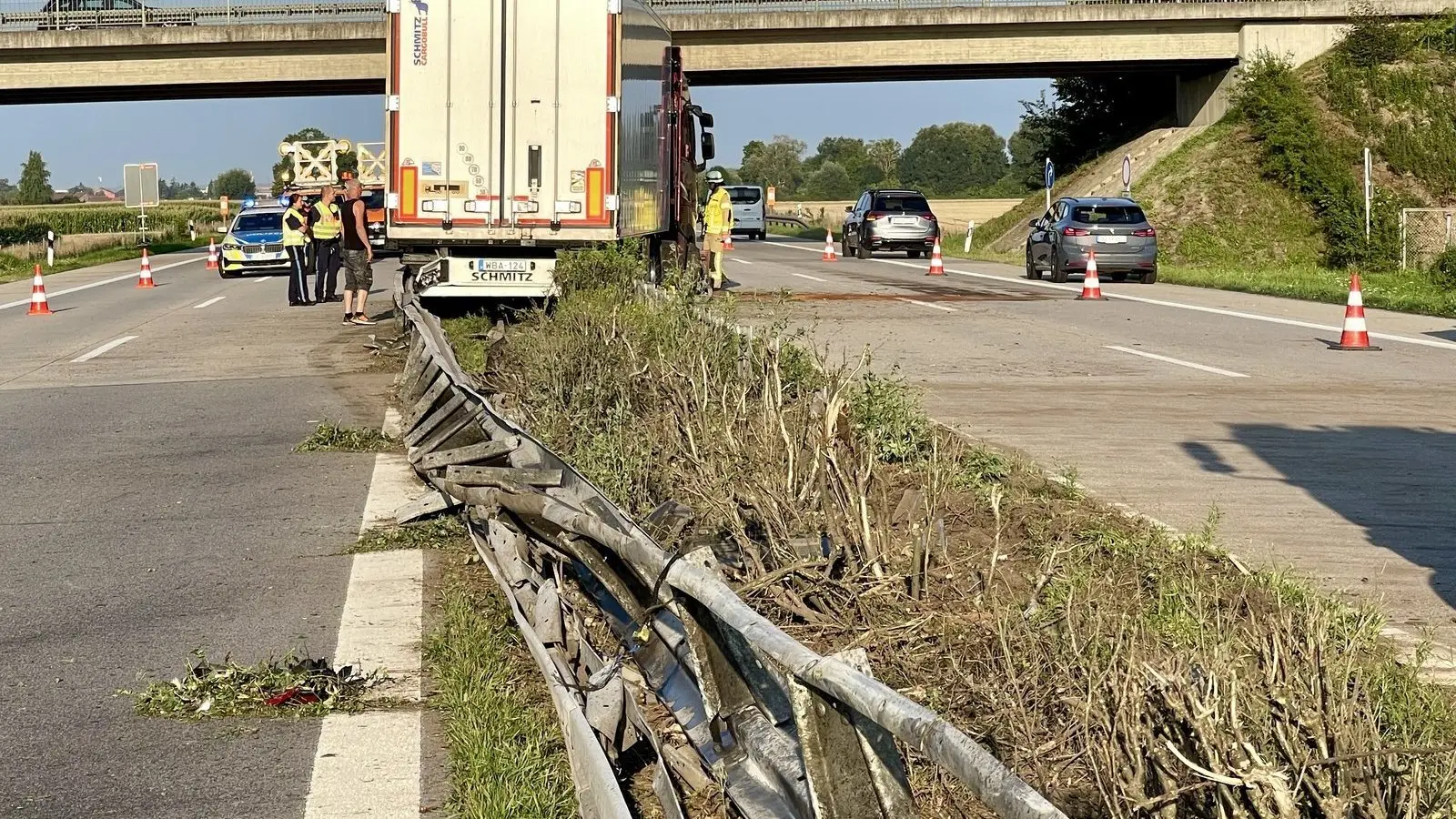 Polizei, Autobahnmeisterei und die Feuerwehren Wörth, Dingolfing und Höfen waren vor Ort. Die Kräfte aus Wörth sperrten die Überholspur auf der Gegenfahrbahn Richtung Deggendorf, sagte der Wörther Kommandant Christian Endres der Redaktion.