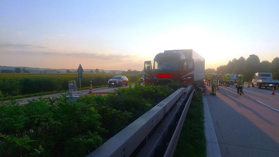 Lastwagen kracht durch Mittelleitplanke auf A92 zwischen Dingolfing und Wörth