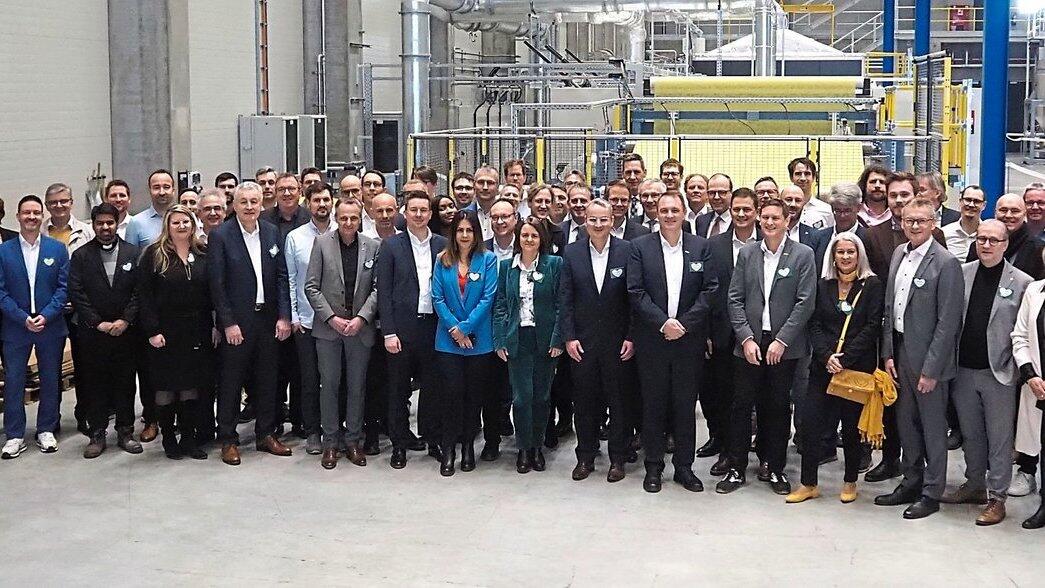 Die Ehrengäste: Aufsichtsratsvorsitzender Thomas Fischer, Geschäftsführung Kurk Wilks und Emese Weissenbacher, Landrat Werner Bum-eder, Bürgermeister Peter Rauscher, Vorstandsvorsitzender der Firmengruppe Max Bögl - Stefan Bögl, IHK-Vizepräsident Max Georg Graf von Arco auf Valley, Pfarrer Peter Neugebauer, Pfarrvikar Joice, Architekten Jürgen Schlake, Vertreter der Leasinggesellschaft LHI, Vertreter der Anlagenlieferanten Reicofil, Autefa und Piovan mit den Vertretern des Werkes.