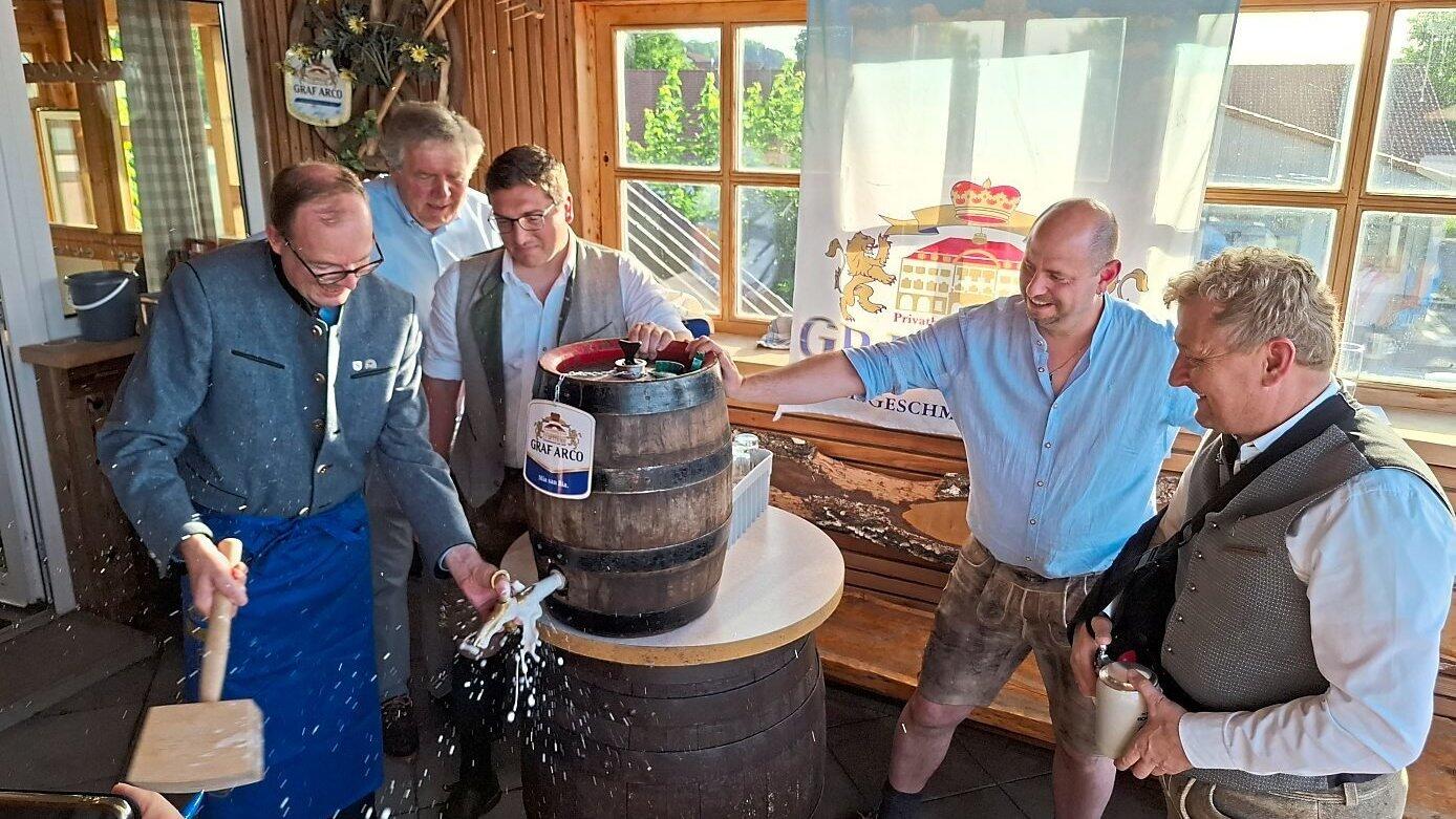 Auf geht’s am Freitag, 18. Juli, zum Parkfest nach Adldorf. Zur Bierprobe am Mittwoch stellte die Graf-Arco-Brauerei ein Fass Festbier zur Verfügung.