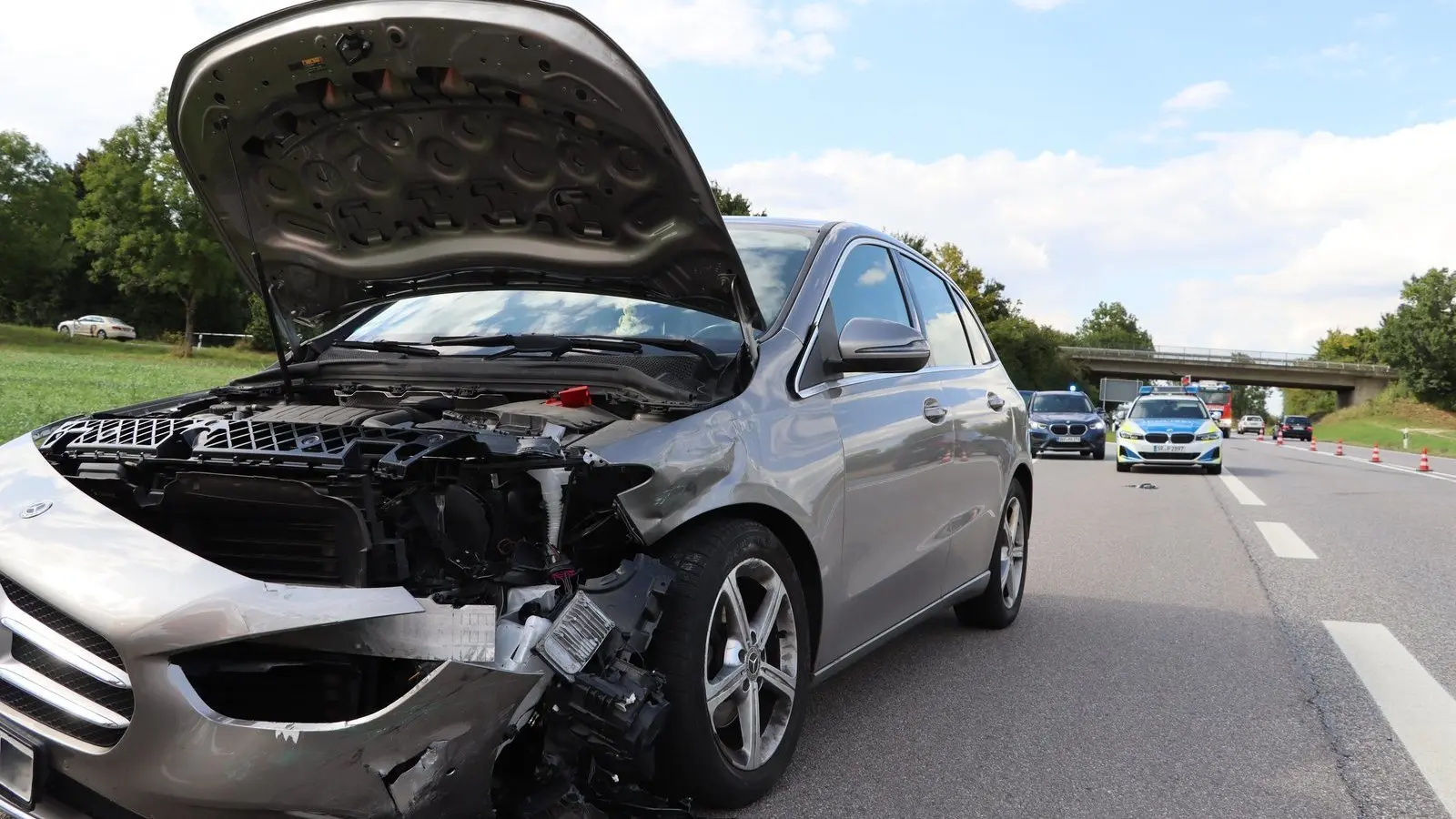 Der Mercedes wurde im vorderen Bereich komplett beschädigt, der Lastwagen auf der rechten Seite. Das Auto musste abgeschleppt werden, der Lastwagen konnte in Begleitung der Polizei zumindest noch bis zur nahe gelegenen Raststätte fahren. Im Einsatz waren die Feuerwehren Pilsting und Ganacker. Die aus Richtung Straubing kommenden Fahrzeuge wurden bei Pilsting abgeleitet, in der Gegenrichtung rollte der Verkehr vorbei.