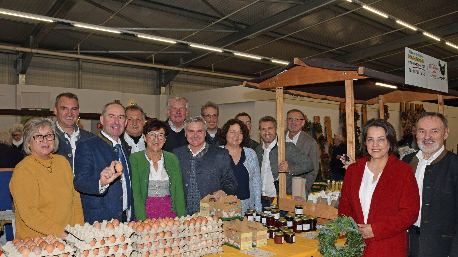 Viele Ehrengäste eröffneten am Freitag den 15. Europäischen Bauernmarkt bei Möbel Biller. 90 Direktvermarkter bieten in der Veranstaltungshalle und auf dem Freigelände von Möbel Biller ihre Nahrungsmittel an.