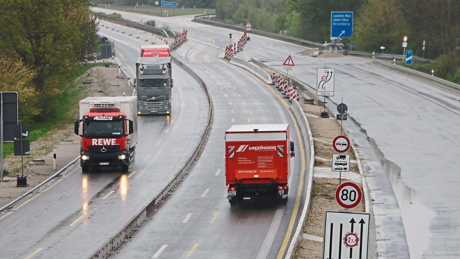 Bis die Arbeiten auf rechten Seite abgeschlossen sind, läuft der Verkehr noch wie bisher. Danach zieht die Baustelle noch einmal um, damit auch die Fahrbahn Richtung München asphaltiert werden kann.