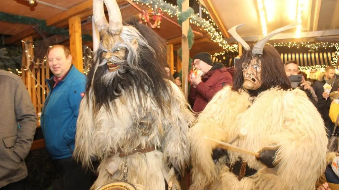 Die Perchten gehen wieder um am Landshuter Christkindlmarkt: Bereits am 4. Dezember sorgten die "Frisinger Fratz'n" für eine schaurige Atmosphäre, am Mittwochabend schauten sie erneut vorbei.